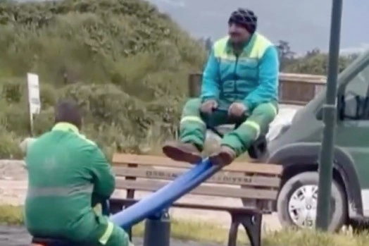 Osmangazi ilçesinde görev yapan temizlik personeli, çalışma sırasında parkta bulunan tahterevalliye binerek kısa süreli eğlendi. O anlar cep telefonu kamerasına yansırken, görüntüler sosyal medyada da ilgi gördü. Günlük yoğun mesaileri sırasında kısa bir mola veren işçilerin neşeli halleri, vatandaşlar tarafından takdirle karşılandı. Görüntülerde, temizlik çalışanlarının çocukluklarına dönmüş gibi eğlendikleri anlar dikkat çekti. Erkan Aydın da görüntüleri sosyal medya hesabından paylaşarak temizlik personeline teşekkür etti. Aydın, paylaşımında çalışanların özverili çalışmalarına dikkat çekti. Şehrin temizliği için her gün erken saatlerde mesaiye başlayan temizlik işçilerinin bu samimi anları, vatandaşlar tarafından "iyi ki varsınız" yorumlarıyla karşılık buldu.