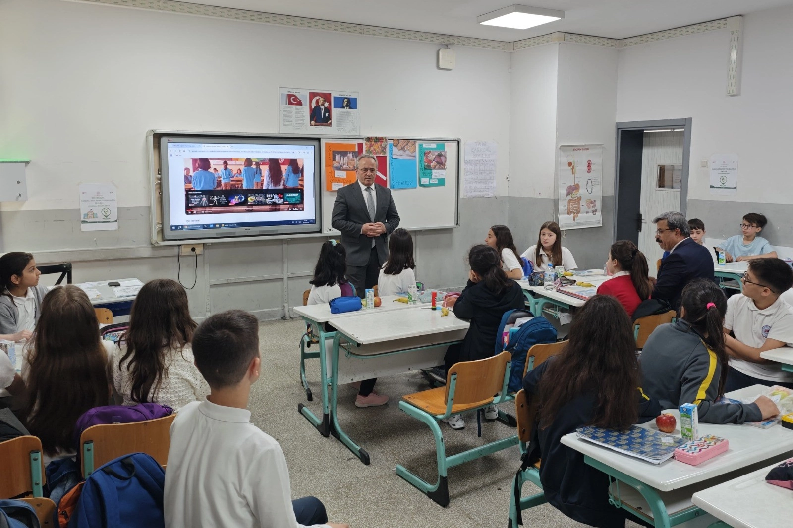 17 İlçe müdürü aynı anda sınıfta Bursa genelinde yürütülen bu kapsamlı farkındalık çalışmasına, 17 ilçe millî eğitim müdürü kendi ilçelerindeki okullarda derse girerek destek verdi. Bursa İl Millî Eğitim Müdürü Dr. Ahmet Alireisoğlu, İl Millî Eğitim Müdür Yardımcısı Abdulkadir Çınar ve Yıldırım İlçe Millî Eğitim Müdürü Mustafa Sevinç ile birlikte Yıldırım Emek Ortaokulunda öğrencilerle bir araya gelerek projeye katılım sağladı. Öğrencilerle sağlıklı beslenmenin önemi üzerine sohbet eden Alireisoğlu, çocukların bilinçli bireyler olarak yetişmesinde bu tür farkındalık çalışmalarının büyük önem taşıdığını vurguladı. "Sağlıkla büyüyen nesiller, mutlu yarınlar" "Sağlıkla Büyüyen Nesiller, Mutlu Yarınlar" sloganıyla yola çıkan proje, öğrencilere sağlıklı beslenme bilinci kazandırmayı ve doğru beslenme alışkanlıklarını küçük yaşlardan itibaren yerleştirmeyi hedefliyor. Eğitim içerikleri, öğrencilerin yaş düzeyine uygun olarak hazırlanırken; doğal ve dengeli beslenme, etiket okuma, katkı maddeleri ve gıda israfı gibi başlıklar öne çıktı. Etkileşimli dersler ve velilerden tam destek 21 Nisan’da gerçekleştirilen ilk uygulama gününde öğretmenler ve yöneticiler, öğrencilerle aktif bir etkileşim içerisinde oldu. Renkli etkinlikler, çizgi romanlar ve interaktif sunumlarla dersler daha ilgi çekici hale getirildi. Öğrencilerin keyifle katıldığı bu derslere, velilerden de olumlu geri bildirimler geldi. Bu durum, projenin okul-aile iş birliğini güçlendirdiğini ortaya koydu. Yıl boyunca etkinliklerle desteklenecek "Sağlıklı Beslenme Yolculuğum" projesi yalnızca sınıf içi derslerle sınırlı kalmayacak. Yıl boyunca düzenlenecek afiş yarışmaları, atölye çalışmaları, saha etkinlikleri ve dijital içerikler ile desteklenerek sürdürülecek. Proje; öğrenci, öğretmen, veli ve toplumun tüm paydaşlarını kapsayan bütüncül bir sağlık eğitimi vizyonu sunuyor. Türkiye yüzyılı vizyonuna katkı Bursa İl Millî Eğitim Müdürlüğü’nün öncülüğünde hayata geçirilen bu örnek çalışma, Türkiye Yüzyılı vizyonuna katkı sunan nitelikli bir eğitim modeli olarak dikkat çekiyor.