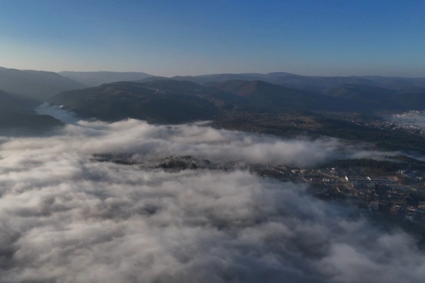 Tamamen sis bulutlarının altında kaybolan şehrin dron ile çekilen masalsı görüntüleri izleyenleri mest etti. Sis bulutlarının üzerinde seyreden dron kamerası 2500 metre yükseklikteki Uludağ ve bulutların dansını anbean görüntüledi. Sis saat 10.00’dan itibaren etkisini kaybetti.