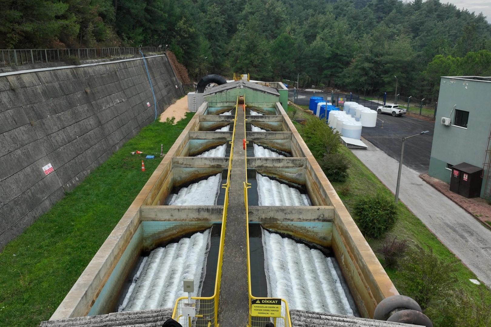 Ulusal ve uluslararası kriterler uygulanıyor Dünya Sağlık Örgütü’nün, Sağlık Bakanlığı’nın ve Tarım ve Orman Bakanlığı’nın belirlediği kriterlerin büyük dikkatle uygulandığı tesiste, birçok ileri düzey fiziksel, kimyasal ve biyolojik arıtma işlemleri yürütülüyor. Tesislerde arıtılan ve sürekli örnek alınan su, şehre dağıtımı yapılmadan önce modern laboratuvar ortamında birçok testten geçirilerek analiz ediliyor. Riskler oluşmadan önleniyor Tesisin arıtma sürecinde su, önce kaba ve ince ızgaralardan geçirilerek fiziksel kirliliklerden arındırılıyor. Ardından kimyasal çöktürme, filtrasyon ve dezenfeksiyon aşamalarıyla suyun içme suyu standartlarına ulaşması sağlanıyor. Bu süreçte kullanılan otomasyon sistemleri sayesinde tüm işlemler anlık olarak izleniyor. Olabilecek riskler daha oluşmadan önleniyor.