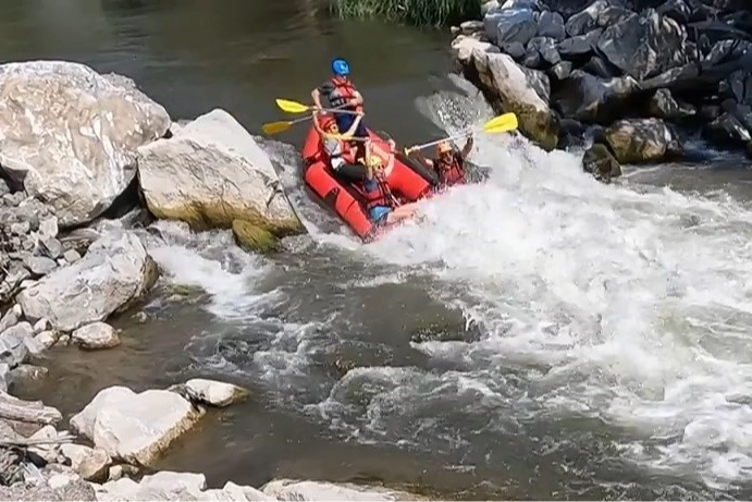 Bursa'nın dağ ilçesi Orhaneli'deki Kocasu Çayı'nda kurulan ve Marmara Bölgesinde tek olan rafting parkuru, doğal güzelliklerin yanı sıra heyecan dolu anlara sahne olmasıyla birçok kişinin dikkatini çekiyor. Türkiye Rafting Federasyonu ile Orhaneli Belediyesi tarafından 2021 yılında hayata geçirilen Sadağı Kanyonu'ndaki Kocasu Rafting parkuru, açıldığı günden bu yana yerli ve yabancı turistin akınına uğradı. Binlerce kişiyi ağırlayan rafting parkurunun bu seferki konukları ise, dağcılar oldu. Türkiye'nin bir çok dağında yaptıkları tırmanışlarla hünerlerini sergileyen dağcılar, rafting sporunda da başarılı olduklarını gösterdi.