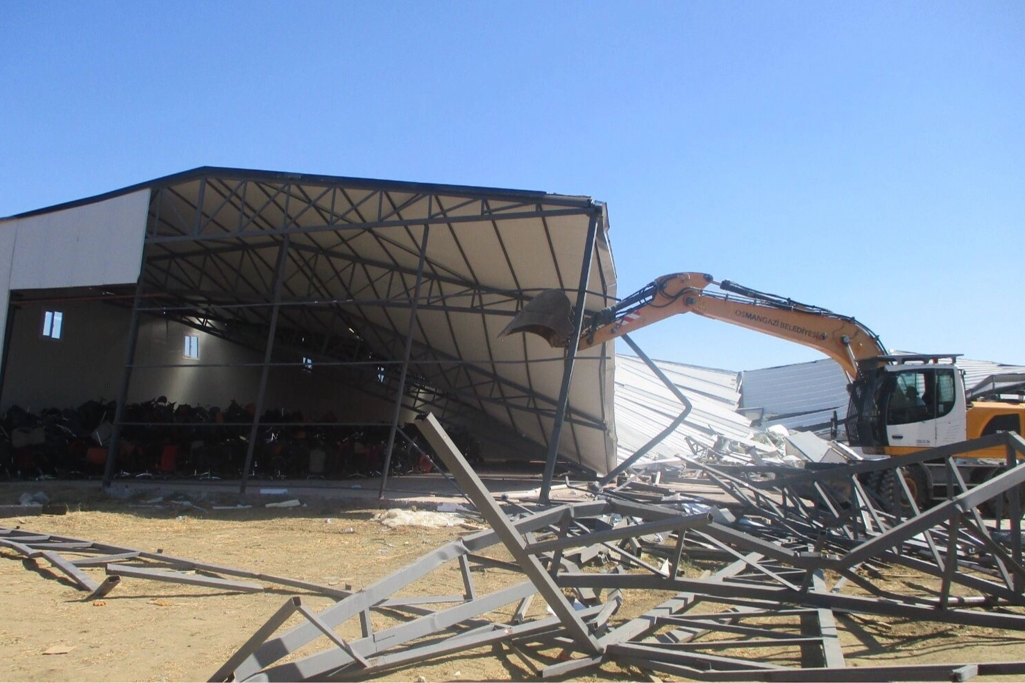 Yürürlükteki kanunlar çerçevesinde hareket eden Yapı Kontrol Müdürlüğü ekipleri, ruhsatsız deponun yıkımı için sabah erken saatlerde bölgeye gitti. Geniş güvenlik önlemleri altında gerçekleştirilen yıkımda, kaçak depo iş makinesi ile yerle bir edildi.