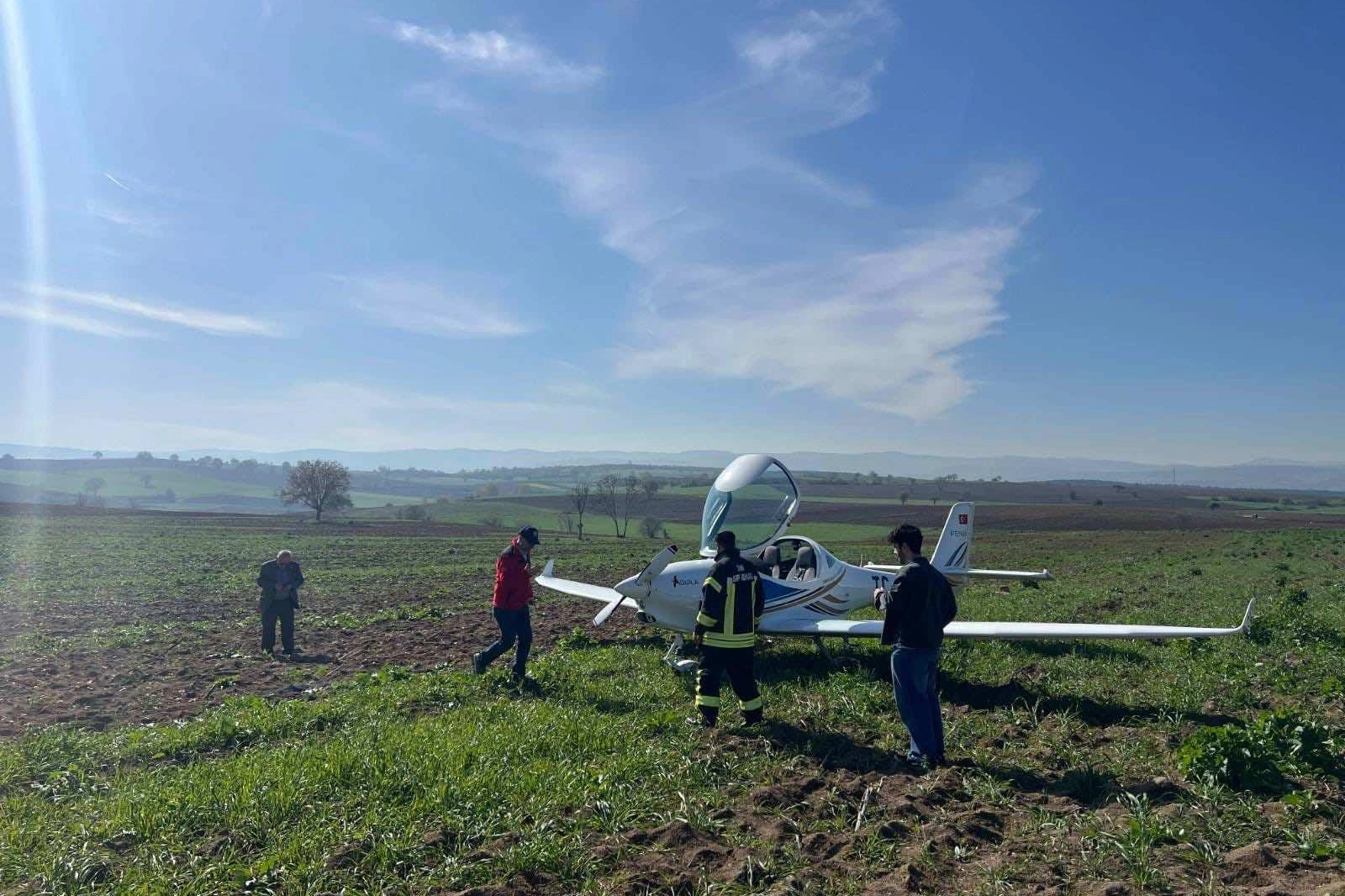 Eğitim uçağı tarlaya zorunlu iniş yaptı