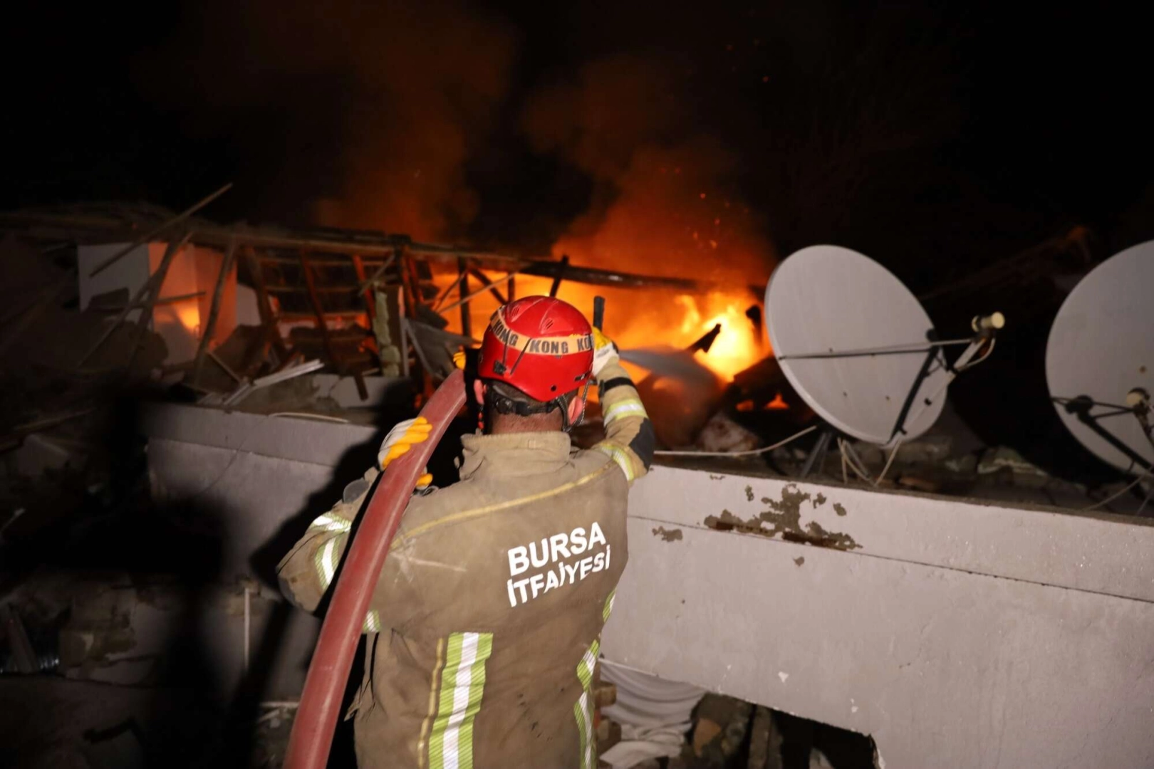 Türkiye’yi yasa boğan ve 11 ilde büyük yıkımlara yol açan depremlerin yaralarını sarma çalışmaları devam ederken, Hatay dün gece iki depremi birden yaşadı. Merkez üssü Hatay’ın Defne ilçesi olan 6.4 ve merkez üssü Samandağ ilçesi olan 5.8 büyüklüğündeki depremler, ağır hasarlı binalarda yıkıma yol açtı. Büyükşehir Belediyesi’nin Antakya’daki Koordinasyon Merkezi’nde alarm durumuna geçen Bursa itfaiyesi, AFAD’ın yönlendirmesiyle Küçükdalyan Mahallesi İpek Sokak üzerinde çöken bir binanın enkazına geçti. Enkaza ilk müdahaleyi yapan AFAD ekipleri, binadan bir kişinin cansız bedenini çıkardı. AFAD ekiplerinin çalışmalarını tamamlandığı sırada bir anda binada yangın çıktı. Olay yerinde hazır bulunan Bursa itfaiyesi, alevlerle aydınlanan gecede yangına anında müdahale etti. Yangın, çevredeki binalara sıçramadan söndürüldü.