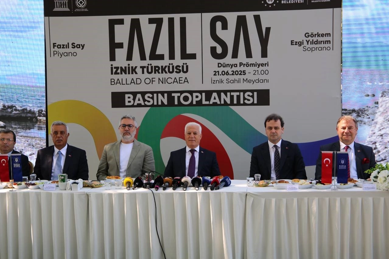 Başkan Bozbey, yaptığı açıklamada 21 Haziran akşamı İznik Gölü kıyısında tarihi bir ana tanıklık edileceğini vurguladı. "Tarihi, kültürel ve medeniyetlerin binlerce yıllık beşiği olan İznik, bu kez dünyaca ünlü bestecimiz Fazıl Say'ın notalarıyla yeniden canlanmış olacak," diyen Bozbey, Fazıl Say'ın sadece Türkiye'de değil, dünya çapında saygı gören bir müzik insanı olduğunu belirtti. "İznik Türküsü, evrensel bir buluşmayı simgeliyor" Bozbey, "Bu toprakların derin tarihinden, kültürel zenginliğinden ve eşsiz doğasından ilhamla ortaya çıkan bu şaheser olan İznik Türküsü, sadece Bursa'mızın sanatla buluştuğu değil, evrensel bir dille dünyaya seslendiği çok özel bir buluşmayı simgeliyor olacak," ifadelerini kullandı. Bozbey, Fazıl Say'ın İznik Türküsü adlı eserinin, ilk kez Bursa'dan yükselerek tüm dünyaya İznik'in ruhunu, sesini ve hikayesini taşıyacağını dile getirdi. Bu konserin dinleyicilere sadece bir müzik ziyafeti sunmayacağını, aynı zamanda tarihle müziğin iç içe geçtiği unutulmaz bir deneyim olacağını söyleyen Bozbey, Helenistik dönemden Roma'ya, Bizans'tan Osmanlı'ya uzanan geçmişiyle İznik'in, tarihi ve doğal güzellikleriyle Türkiye'nin en özgün yaşam alanlarından biri olduğunu hatırlattı. Bursa Büyükşehir Belediyesi olarak kentin güzelliklerini hak ettiği değere ulaştırmayı hedeflediklerini belirten Başkan Bozbey, Fazıl Say'ın bu eşsiz konseriyle İznik ve Bursa'yı dünyaya daha da duyurarak kentin tanıtımı anlamında önemli bir adım atılmış olacağını kaydetti. Başkan Bozbey, Bursa'nın gelecek kuşaklara ulaşması için önemli bir konseri İznik'te gerçekleştirecek olan Fazıl Say'a yürekten teşekkürlerini sunarken, bu sanat buluşmasının gerçekleşmesinde katkı sağlayan ve kültürel mirasa sahip çıkma konusunda emek veren tüm arkadaş ve dostlarına da şükranlarını iletti.