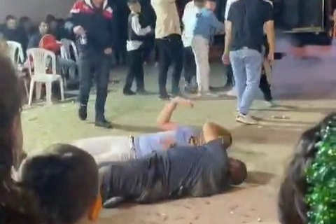 Olay Bursa'nın İnegöl ilçesi Kurşunlu mahallesinde meydana geldi. Damadın arkadaşları, beraber çiftetelli oynadıktan sonra çalınan yabancı müzikte adeta farklı bir kareografi yaptılar. Yere yatarak dans eden gençler, dikkatleri üzerlerine çekti.