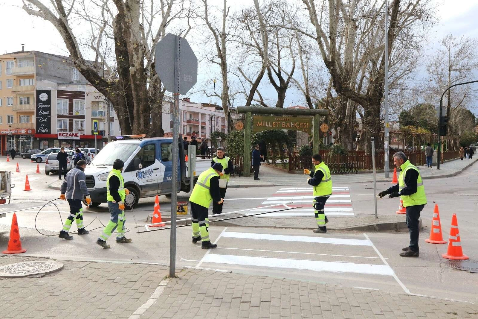 Gürsu Belediye Başkanı Mustafa Işık, “İlçemizin merkezinde ihtiyaç duyulan noktalarda yaptığımız üstyapı çalışmalarıyla yenilediğimiz cadde ve sokaklarımızı trafik düzenlemeleriyle de rahatlatıyoruz. Ekiplerimiz, araç sürücülerinin daha dikkatli araç kullanmalarını sağlayan ve hemşehrilerimizin can güvenliğinin korunması açısından büyük önem taşıyan trafik yol yönlendirme çizgilerini yenileyerek daha görünür hale getiriyor. Yaya trafiğinin yoğun olduğu noktalarda araçların daha dikkatli ve yavaş hareket etmesini sağlayan yol çizgileri özellikle okul çıkışlarında çocuklarımızın can sağlığının korunmasında büyük önem taşımakta. İlçemizde ulaşımın en sağlıklı şekilde sağlanması yönünde yol ve trafik yönlendirme çalışmalarımız ihtiyaçlar çerçevesinde durmaksızın devam etmekte ” dedi. Büyükşehir Belediyesi’nin koordinasyonunda, ana caddelerde yapılan çalışmalarla, yayaların caddelerde karşıdan karşıya geçiş üstünlüğünü belirten farkındalık uyarı işaretleri de oluşturuldu.