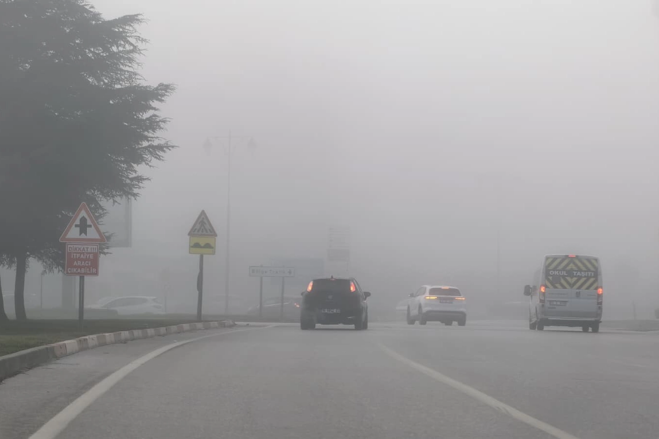 Sis nedeniyle trafikte zaman zaman akış yavaşlarken, bazı sürücüler de güvenlik amacıyla yol kenarında beklemeyi tercih etti. Sabah saatlerinde doğan güneş ise yoğun sis tabakasının ardından adeta güçlükle görülebildi.
