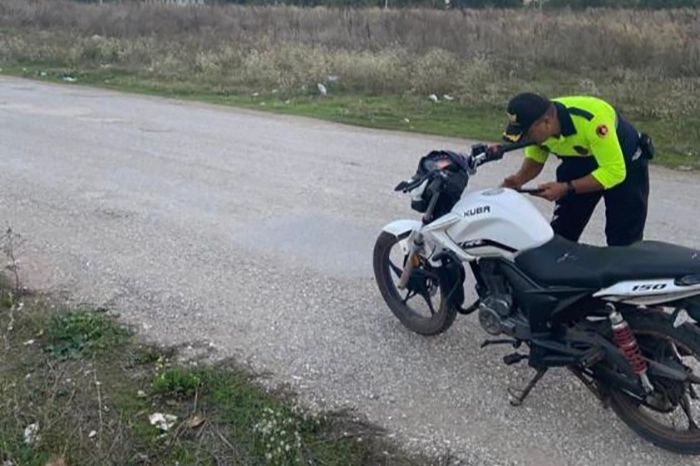 Bursa'nın İznik ilçesi Boyalıca Mahallesi’nde tescilsiz ve plakasız 8 adet motosiklet tespit edilirken, motosikletler muhafaza altına alınarak yediemin otoparkına çekildi. 1 otomobilin sorgulamasında araç ile plaka uyumsuzluğu olduğu, plakanın traktör plakası olduğunun tespit edilirken şahsa Resmi Belgede Sahtecilik suçundan adli işlem yapılarak, Trafik Jandarması tarafından 20 bin 302 TL idari para cezası kesildi. 1 erkek şahsın kullandığı plakasız motosikletin yapılan kontrollerde şase ve motor numaralarının kazılı olduğu tespit edilerek, şahsa resmi belgede sahtecilik suçundan adli işlem yapıldı. Uygulama sonucunda Jandarma tarafından 8 tescilsiz motosiklet, 1 şase ve motor numarası kazınmış motosiklet ile 1 sahte plakalı kamyonet olmak üzere 10 araç Yediemin Otoparkına çekilirken toplam 14 araca yasal işlemleri yapılarak 31 bin 23 TL idari para cezası uygulandı.