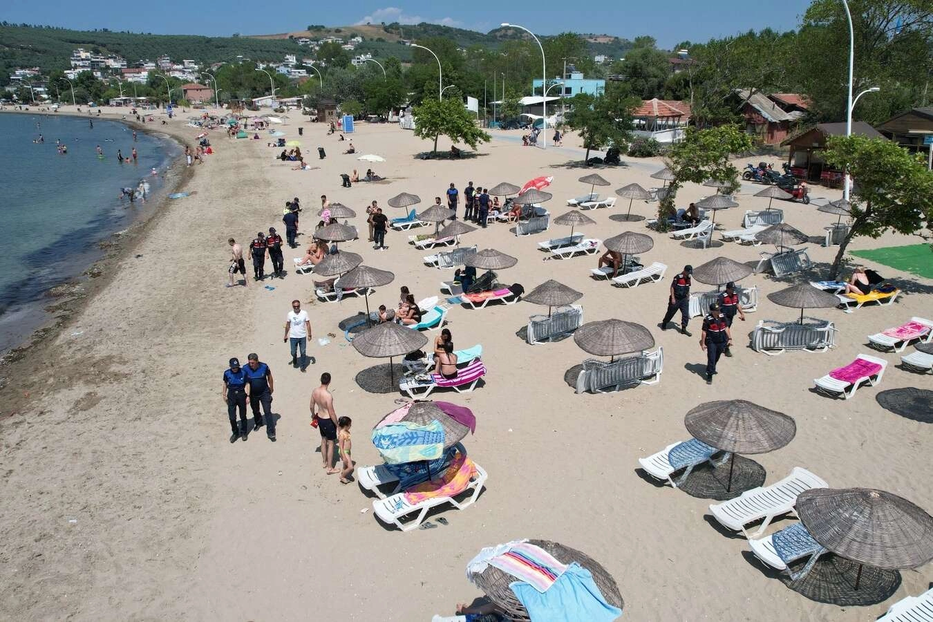 Bursa’nın en gözde sahillerine sahip Mudanya’da tatil sezonunun gelmesi ile birlikte tatilcilerin akınına uğradı. Hava sıcaklıklarının rekor seviyede artması ile birlikte serinlemek isteyen vatandaşlar plajları doldururken Bursa Valiliği’nin talimatı doğrultusunda jandarma ve sahil güvenlik ekipleri harekete geçti. Günü birlikçi diye tabir edilen tatilcilerin plaja rastgele çadır kurması, halı, kilim, battaniye ile gölgelik oluşturması ve mangal yakılması ve nargile içilmesi şikayetlerinin artması üzerine jandarma ve sahil güvenlik ekipleri bölgede denetim gerçekleştirdi. Yabancı uyruklu şahıslar konusunda rahatsızlıkları göz önünde bulunduran ekipler kimlik kontrolü, iç çamaşırlarıyla denize girenler ve nargile içenlerin kıyı boyunca tarayarak tespit çalışması yaptı. Sabah erken saatlerden itibaren denetim gerçekleştiren jandarma ve sahil güvenlik ekipleri kurallara uymayanlar hakkında Kabahatler Kanunu gereğince müdahale ederek, yasal işlem başlattı. Mudanya İlçe Jandarma Komutanlığı’dan yapılan açıklamada denetimleri yaz sezonu boyunca devam edeceği belirtildi.