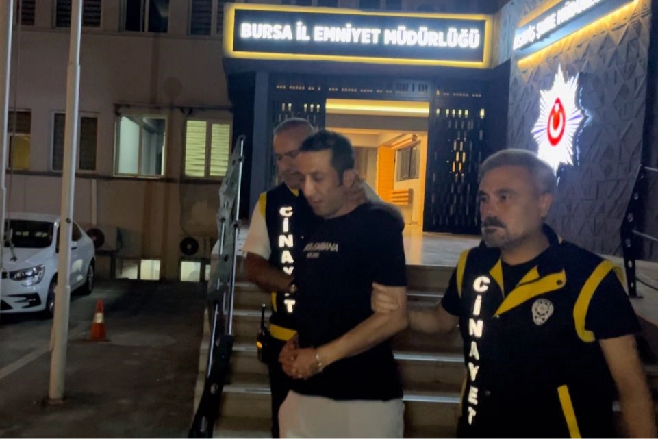 Bursa Asayiş Şube Müdürlüğü Cinayet Büro ekiplerinin güvenlik kameralarından adım adım takip ettiği katil zanlısı Oğuz Ermiş, kaçmak üzereyken yakalandı. Gözaltına alınan Ermiş’in Asayiş Şubedeki işlemlerinin ardından adliyeye sevk edilecek.