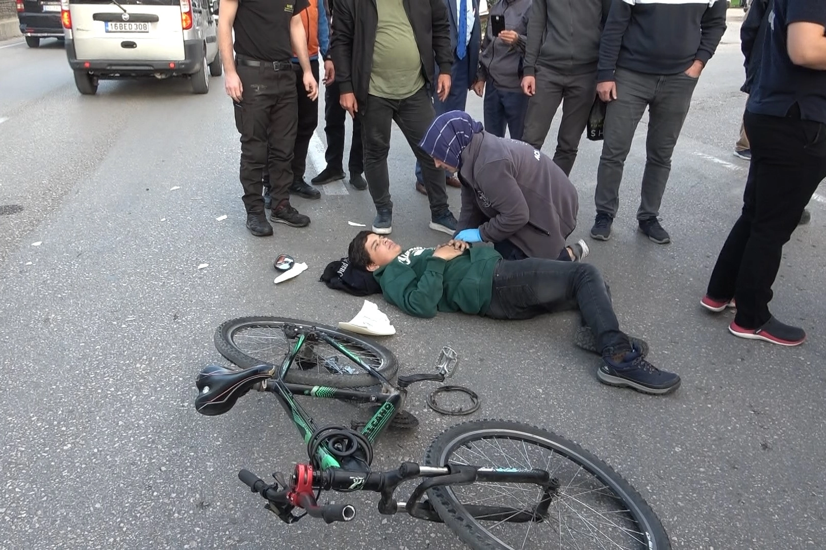 Merkez, Osmangazi ilçesi Kemal Bengü Caddesi üzerinde 16 KHZ 70 plakalı motosikletiyle yemek siparişine giden Ahmet Faik, yolun karşısına bisikletiyle geçen 13 yaşındaki Eren Acar’a çarptı. Metrelerce savrulan ikilinin yardımına çevredekiler koşarken, durum 112 ekiplerine bildirildi.