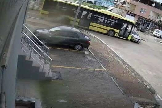 Edinilen bilgiye göre, güvenlik kamerasına yansıyan ilk kaza Osmangazi ilçesinde meydana geldi. Dört yol ağzında hız kesmeyip yollarına devam eden bir otobüs ile otomobil çarpıştı. Çarpışma sırasında yolcular büyük panik yaşadı. O anlar kameraya yansıdı.