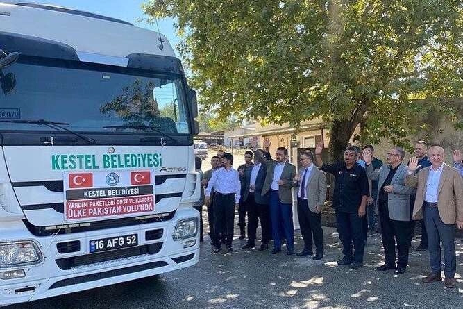 Pakistan’da 14 Haziran’dan bu yana etkili olan muson yağmurlarının yol açtığı sellerde etkilenen vatandaşlara Türkiye destek olmaya devam ediyor. Bu vesileyle Bursa Kestel Belediyesi tarafından Pakistan’a bir TIR dolusu temel ihtiyaç malzemesi yola çıktı.