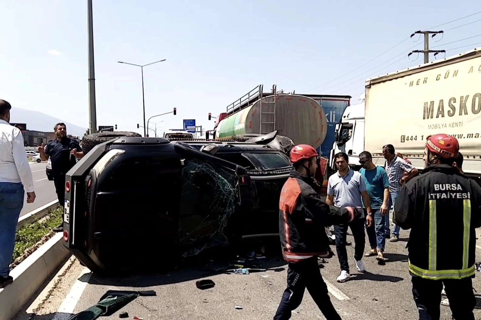 Kaza, 14.00 sıralarında Bursa-Ankara Karayolu üzeri İnegöl girişinde meydana geldi. Eskişehir'den Bursa'ya seyir halinde olan sürücü Murat Öz (46) yönetimindeki 16 CBF 32 plakalı tır sürücüsünün kontrolünden çıkarak, kırmızı ışıkta bekleyen Yusuf Beklik (31) yönetimindeki 16 TAY 96 plakalı cipe, ardından bekleyen sürücü Erhan Ersan (35) yönetimindeki 16 SLL 112 plakalı tıra çarparak durabildi. Çarpışmanın etkisiyle cip devrildi.