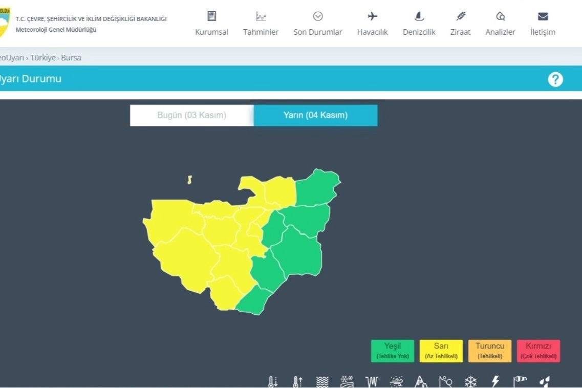 Yarın saat 13.00'dan başlayıp pazar sabahı 04.00'a kadar sürmesi beklenen uyarı da şu ifadelere yer verildi: “Rüzgarın; güney ve güneybatı yönlerden kuvvetli ve fırtına (50-70 km/saat) şeklinde esmesi beklendiğinden ağaç ve direk devrilmesi, çatı uçması ve ulaşımda aksamalar gibi olumsuzluklara karşı dikkatli olunması gerekmektedir.”