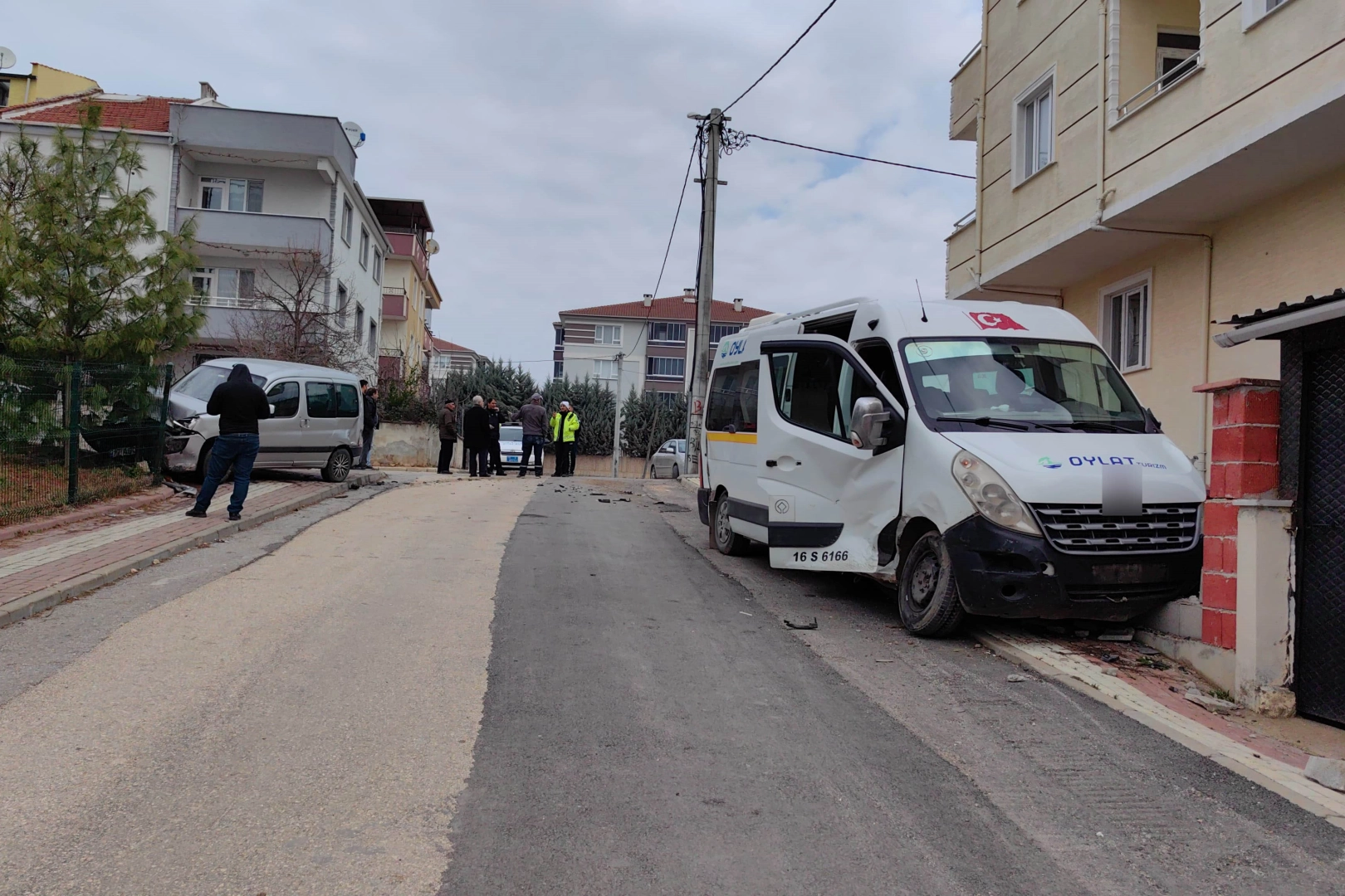 Kaza, saat 12.00 sıralarında İnegöl ilçesi Yeni Mahalle Sancak ile Gülfidan sokaklarının kesiştiği kontrolsüz kavşakta meydana geldi. Edinilen bilgiye göre, Sancak sokaktan çıkan sürücü Y.G. (21) yönetimindeki 77 AD 038 plakalı hafif ticari araç, Gülfidan sokakta seyreden sürücü Ç.T. (45) yönetimindeki 16 S 6166 plakalı okul servis minibüsü ile çarpıştı. Çarpışmanın etkisiyle savrulan araçlardan servis minibüsü evin bahçe duvarına, diğer araç ise parkın tel örgü duvarına çarparak durabildi.