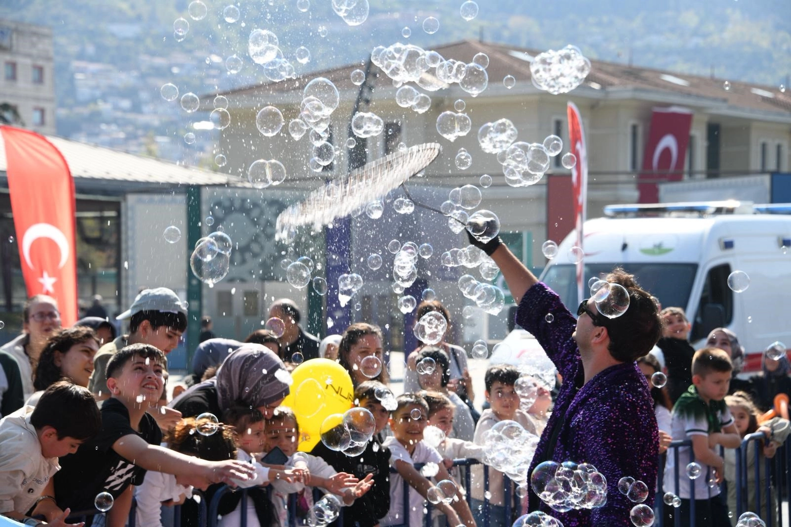 Osmangazi Belediyesi’nin gerçekleştirdiği etkinlikler kapsamında Osmangazi Meydanı, çocuklar için adeta dev bir eğlence ve buluşma alanına dönüştürüldü. Üç gün boyunca süren programda birbirinden farklı aktiviteler, sahne gösterileri ve konserlerle çocuklar bayram sevincini doyasıya yaşadı. Gün boyu devam eden etkinliklerde çocuklar hem eğlendi, hem de sosyal ve kültürel açıdan zengin deneyimler kazandı. Etkinlikler çerçevesinde sahne alan sanatçılar da bayram coşkusunu zirveye taşıdı. Cahit Berkay ve Den Den konserinin ardından son gün sahneye çıkan Şubadap Çocuk, enerjik performansı ve eğlenceli şarkılarıyla çocuklara unutamayacakları anlar yaşattı. Ritim dolu melodiler eşliğinde dans eden çocuklar, bayramın ruhunu doyasıya hissetti.