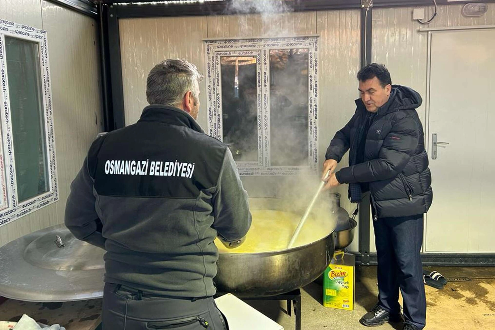 Asrın felaketi olarak nitelenen büyük depremlerin ardından bölgedeki çalışmalarını sürdüren Osmangazi Belediyesi, ramazan ayında da gönül sofraları kurarak depremzede vatandaşlara iftar ve sahur yemeği dağıtacak. Depremin ilk yaşandığı günlerden itibaren farklı noktalarda sıcak çorba dağıtımı yapan Osmangazi Belediyesi, 11 ayın sultanı ramazan ayı boyunca Gaziantep’in İslahiye ve Hatay’ın Antakya ilçesinde her gün ikişer bin kişilik iftar ve sahur yemeği çıkaracak. Ramazanın kardeşlik ve paylaşma ayı olduğuna dikkat çeken Osmangazi Belediye Başkanı Mustafa Dündar, “Sofralarımızın bereketini deprem bölgesindeki kardeşlerimizle paylaşacağız. Ramazan ayı süresince iki farklı noktada kuracağımız çadırlarda iftar ve sahur yemeği ikram edeceğiz. İslahiye’de 2 bin, Antakya’da 2 bin olmak üzere her gün 4 bin kişilik yemek çıkaracağız. Rabbim, tuttuğumuz oruçları, yaptığımız ibadetleri kabul etsin. İnşallah, bu sıkıntı günleri hep birlikte aşacağız.” dedi.