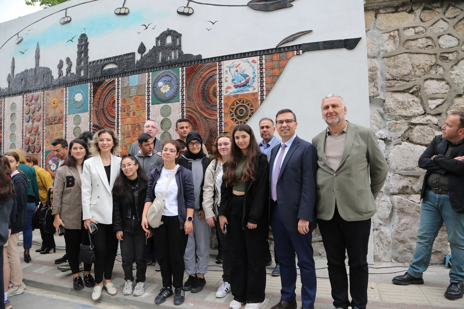 Açılışa Nilüfer Belediye Başkan Yardımcıları Okan Şahin, Şirin Arıbaş, Bukle Erman ve panonun oluşturulmasına katkı koyan öğretmenler ve öğrenciler katıldı. Okan Şahin, son seramik parçayı da koyarak panoyu tamamladı.