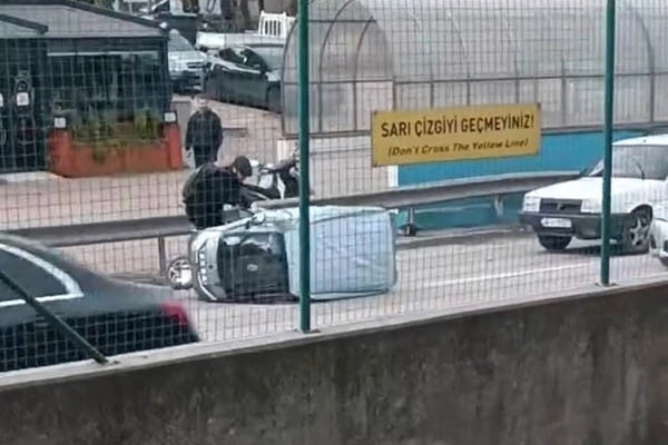 Bursa'da şiddetli rüzgar, mini otomobili devirdi. Olayda kısa süreli panik yaşandı.