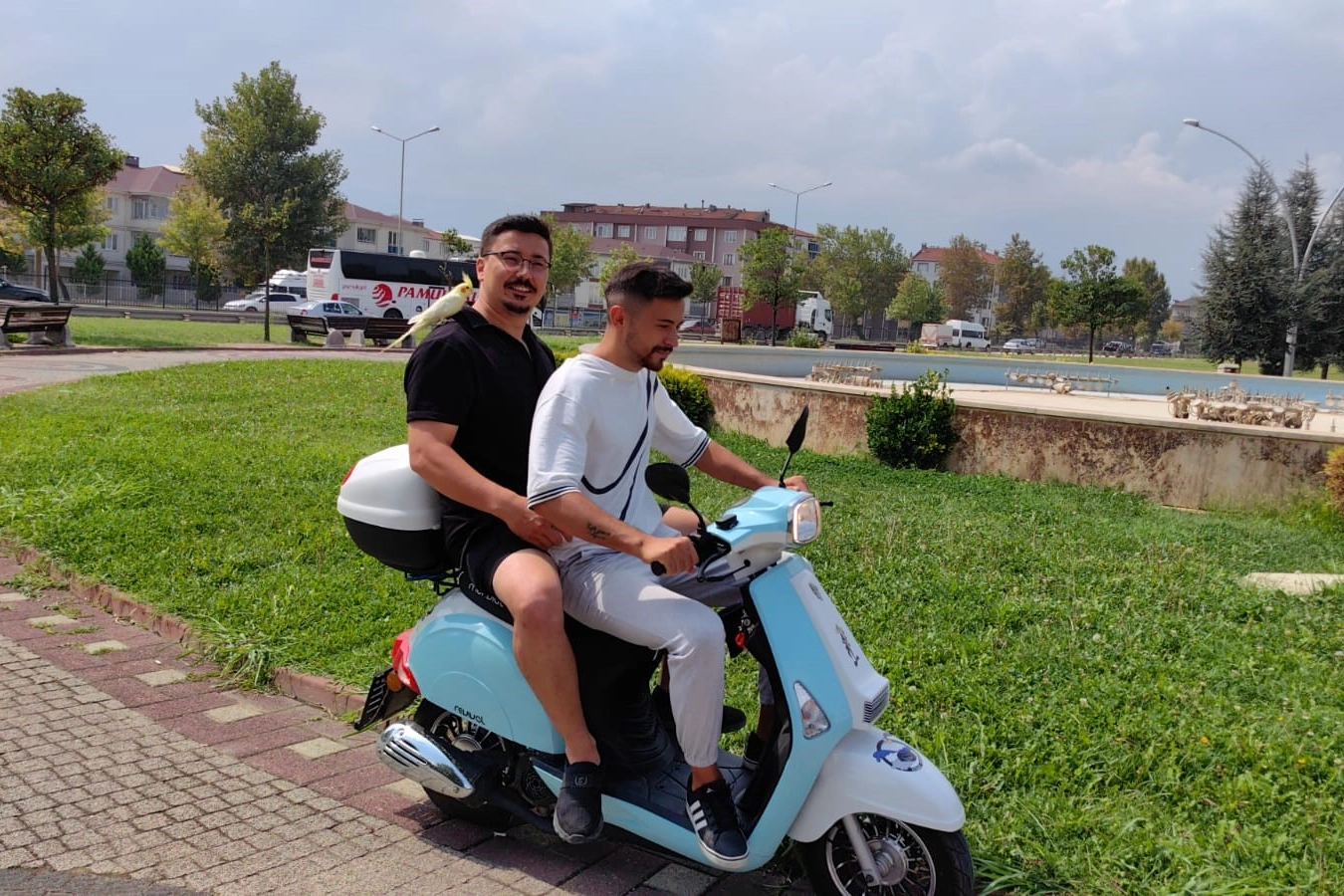 Açıklama yapan Uğur Günay, "Kuş aslında benim bir arkadaşımdaydı. Normalde hayvanları sever ama bu kuşa eziyet çektirdiğini gördüm. Ben de rica ettim istedim o da beni kırmadı. Sonra ben kuşu evde bakmaya başladım. Kuş çok ürkmüş zamanında işkence görmüş galiba, arkadaşım da ona kötü davrandığını, kızdığını söyledi. Zamanla birbirimize alıştık, normalde yemek yemiyor ama ben yemek yerken o da gelip yiyor. Sonra oğlumla dışarıda gezmeye başladık. Ben motosiklet kullanmayı seviyorum belki onunla da olur diye onu da bindirdim. O da alıştı buna ve biz Oylat’ın yakınlarında olan köyüme gidip gelmeye başladık. Haftada bir kere git gel 30 km yol yapıyoruz. Serüvenimiz bu şekilde başladı.