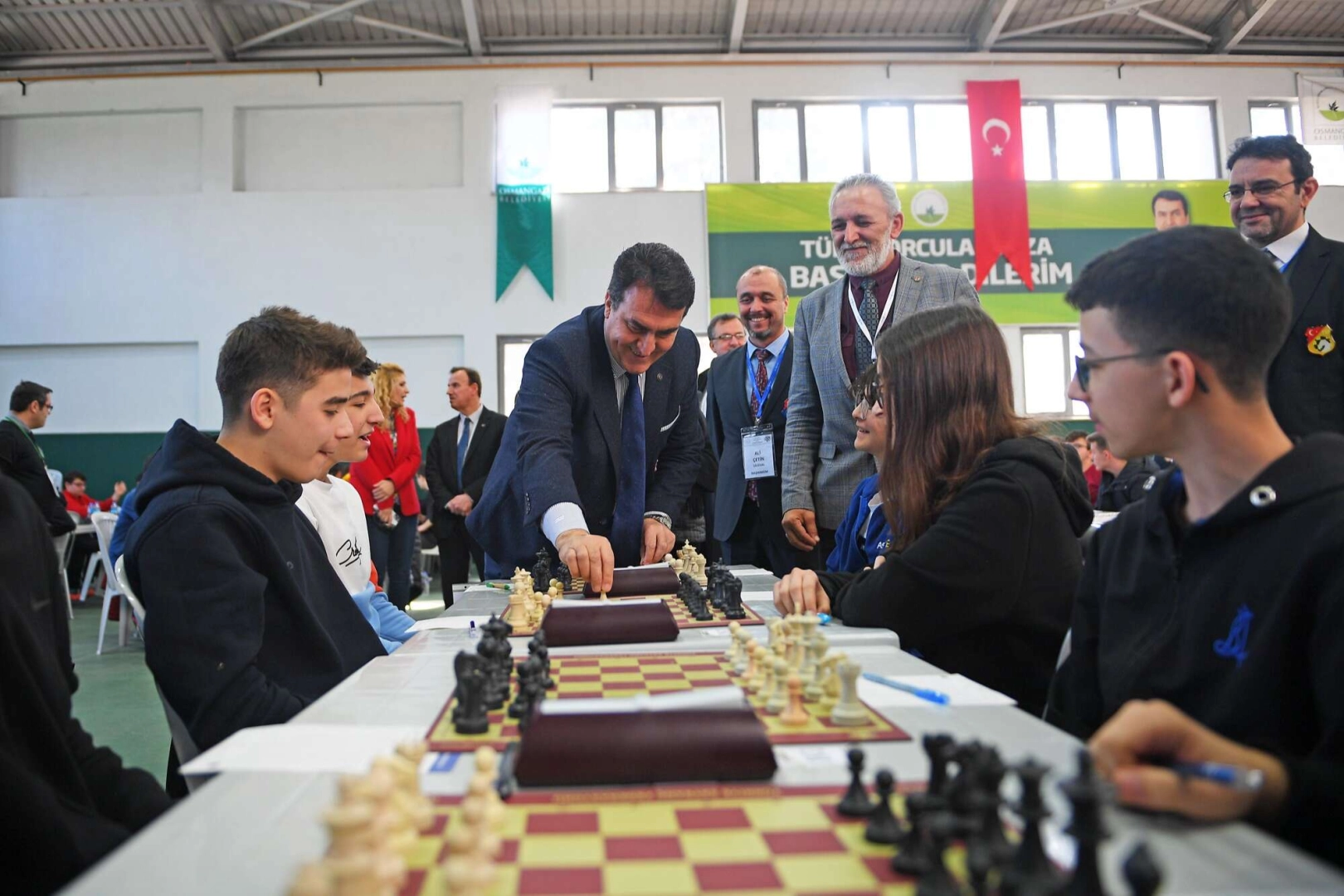 Ertuğrul Sağlam Spor Tesisleri’nde düzenlenen Okul Sporları Satranç Takım Turnuvası’na öğrencilerin ilgisi büyük oldu. Orta ve lise seviyesindeki okullarda öğrenim gören öğrencilerin yer aldığı turnuvaya, küçükler kategorisinde 41, yıldızlar kategorisinde 35, gençler kategorisinde ise 63 olmak üzere 139 okuldan toplam 768 öğrenci kayıt yaptırdı. 3 gün sürecek turnuvada öğrenciler takım olarak mücadele edecek. Puan ve averaja göre yapılacak sıralama sonunda kızlar ve genel kategorilerinde sıralamaya giren takımlara kupa ve madalyaları takdim edilecek. Bursa il yarışmasında yıldızlar ve gençler kategorilerinde dereceye giren okullar, bölge turnuvasına katılmaya hak kazanacak. Bölge yarışmasında dereceye girenler ise daha sonra Türkiye finallerine katılacak. Okul Sporları Satranç Takım Turnuvası’nda minikler kategorisindeki karşılaşmalar ise Mayıs ayında yapılacak. Kayıtların devam ettiği minikler kategorisine binden fazla öğrencinin kayıt yaptırması bekleniyor. Turnuvanın açılış hamlesini yapan Osmangazi Belediye Başkanı Mustafa Dündar, “Satranç, öğrencilerimizin zeka gelişimine katkı sağlayacak önemli bir faaliyet. Turnuvaya katılan tüm öğrenci ve ailelerini kutluyorum. Başarılar diliyorum” dedi.