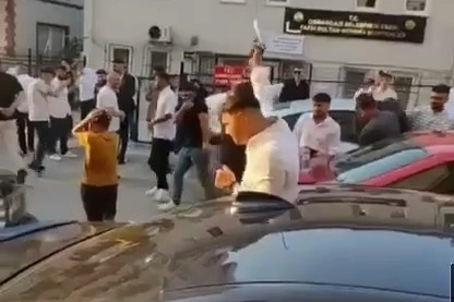 Merkez Osmangazi ilçesi Emek Mahallesi'nde düğün töreni öncesi gelin alma merasimi için damat tarafı bir araya geldi.