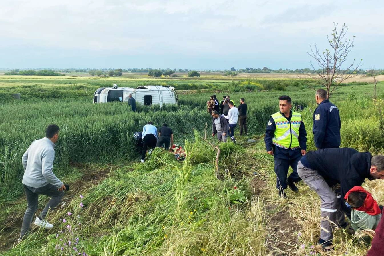 Edinilen bilgiye göre; Bursa-Balıkesir karayolu üzerinden Karacabey ilçesine doğru seyreden Yusuf Ergüneş idaresindeki 16 S 8627 plakalı işçi servisinin Çingençeşme Mevkisi'nde lastiği patladı. Direksiyon hakimiyetini kaybeden servis aracı taklalar atarak yol kenarındaki buğday tarlasına devrildi.