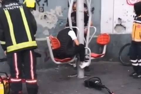 Bursa Büyükşehir Belediyesi İtfaiye Daire Başkanlığı ekipleri kısa ürede olay yerine gelerek, demir makası ile aleti kesti. Amatör sporcu gencin kafası demir korkuluklardan çıkarıldı.