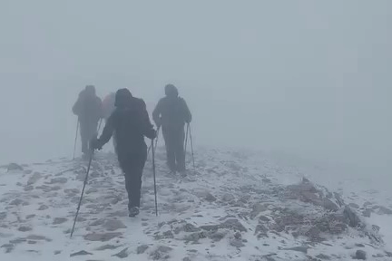 Bursa Yıldırım Dağcılık Kulübü ile Bursa Dağcılık ve Doğa Sporları İhtisas Kulübü üyeleri Uludağ'ın 2543 metrelik zirvesine kış sezonunun tırmanışını gerçekleştirdi. 2543 metrelik zirveye fırtına ve kar yağışı altında yürüyen dağcılar sezonun ilk kar yağışını kutladı.