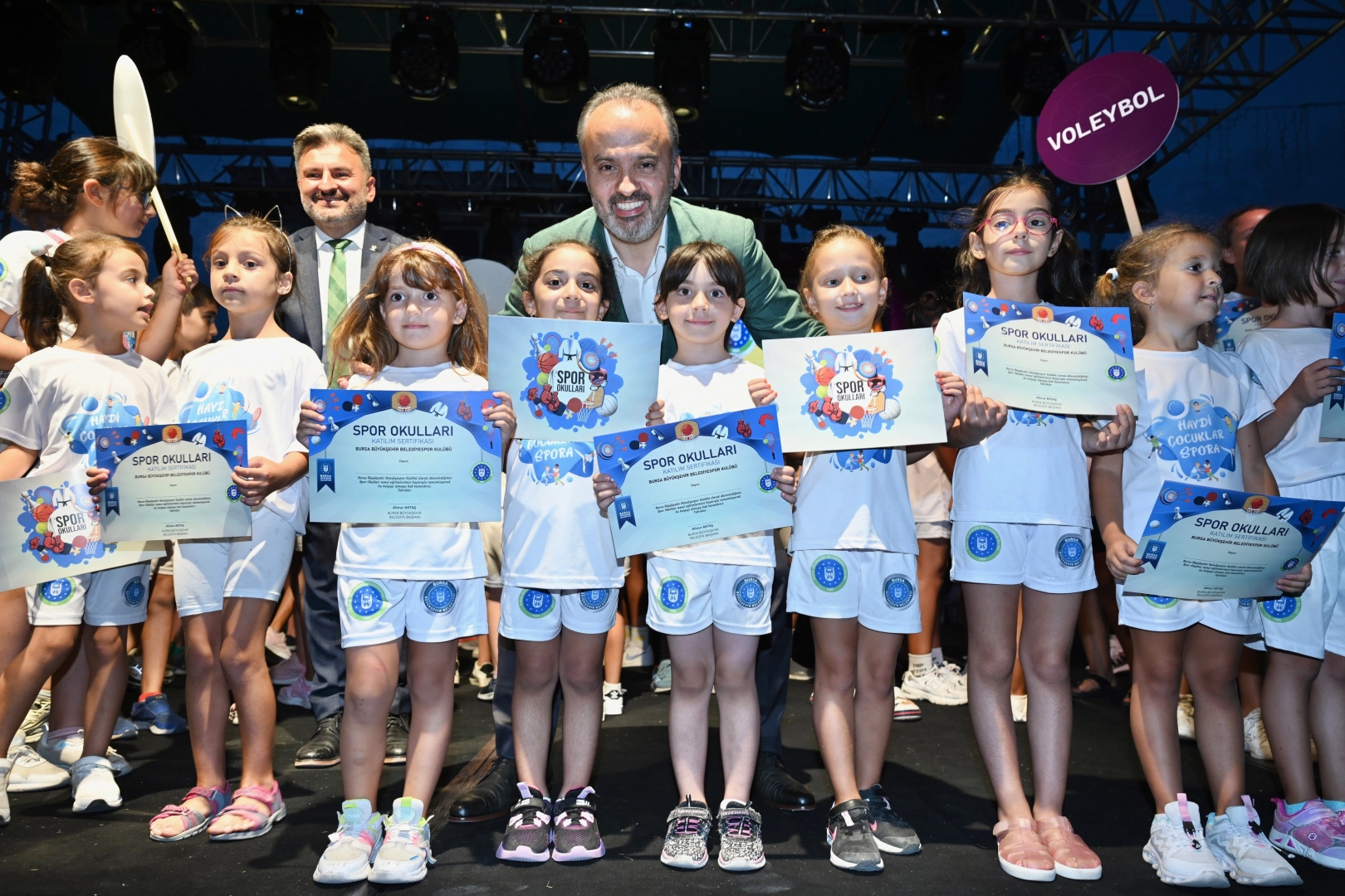 Büyükşehir Belediyesi’nin, Büyükşehir Belediyespor Kulübü işbirliğiyle düzenlediği ve 3 Temmuz'da başlayan yaz spor okulları Mudanya Mütareke binası önündeki meydanda düzenlenen sertifika töreniyle tamamlandı. 4-17 yaş arasında yaklaşık 20 bin çocuk, yaz spor okulları sayesinde yüzme, okçuluk, kort tenisi, boks, voleybol, basketbol, cimnastik, satranç, taekwondo, masa tenisi, güreş, judo ve karate olmak üzere 13 branşta sporla buluştu. Çocukların yaz tatilini sporla iç içe geçirmesini sağlayan yaz spor okullarının kapanış törenine Bursa Büyükşehir Belediye Başkanı Alinur Aktaş, Mudanya Kaymakamı Ayhan Terzi, Bursa Milletvekilleri Ayhan Salman ve Emine Yavuz Gözgeç, Bursaspor Basketbol Kulüp Başkanı Sezer Sezgin, Büyükşehir Belediyespor Kulübü Başkanı Gökhan Dinçer, sporcular ve aileleri katıldı.