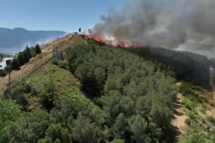Yerleşim yerine sıçrayan yangın böyle görüntülendi