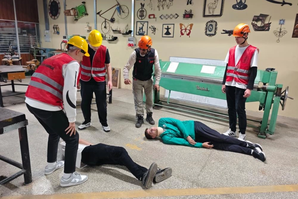 Milli Eğitim Bakanlığı tarafından yürütülen 'Yeşil Vatan-Benim Okulum Geleceğe Çare' projesi çerçevesinde, 2025-2026 Eğitim Öğretim Yılı Tematik Takviminde Ekim ayı 'Afetler ve Dayanıklılık Ayı' olarak belirlendi. Bursa İl Milli Eğitim Müdürlüğü İş Yeri Sağlık ve Güvenlik Birimi bünyesinde görev yapan MEB AKUB koordinasyonunda, Atatürk Mesleki ve Teknik Anadolu Lisesi ev sahipliğinde tatbikat gerçekleştirildi. Senaryo gereği deprem sonrası okul binasında mahsur kalan öğrencilere yönelik çok aşamalı bir tahliye ve müdahale tatbikatı yapıldı. Tatbikatın ilk aşamasında, Bursa AFAD ekibi idari binada mahsur kalan öğrenciyi kurtarmak için müdahalede bulundu. Aynı anda, Organize Sanayi Bölgesi İtfaiye Birimi, çatı katında çıkan temsili yangına 'Hızır ve Acil Müdahale Aracı' ile müdahale etti. Daha sonra Bursa UMKE ekibi, kantinde mahsur kalan öğrenciye ulaşarak ilk yardım uyguladı. Bursa İnsani Yardım Vakfı Arama Kurtarma Ekibi, atölyede mahsur kalan öğrenciye müdahale etti. Tatbikatın son aşamasında ise MEB AKUB ekibi, farklı bir atölyede mahsur kalan öğrenciyi kurtardı. Gerçeği aratmayan bu tatbikat, öğrenciler tarafından büyük bir ilgiyle takip edildi.