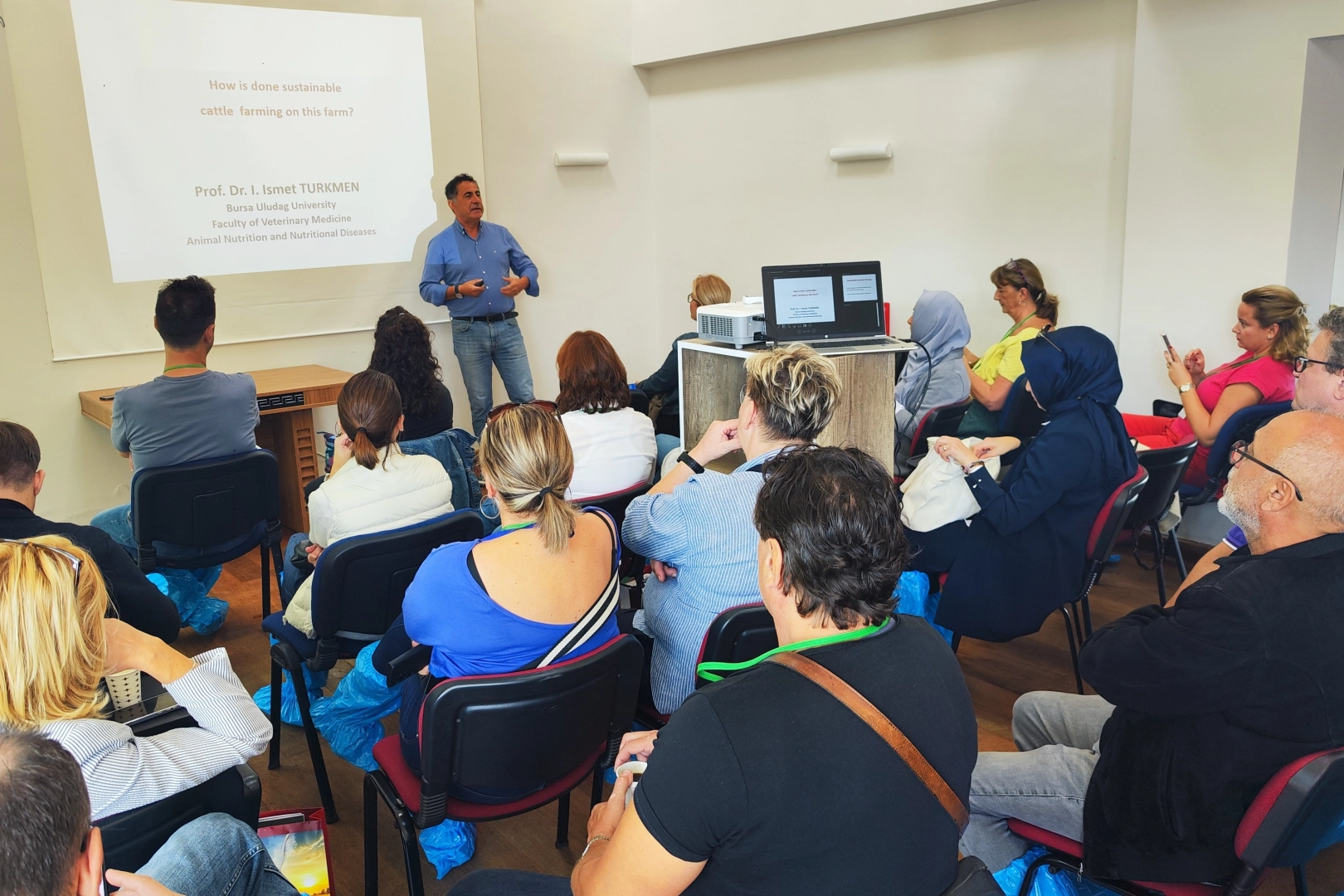Osmangazi İlçe Milli Eğitim Müdürlüğü'nün ortağı olduğu, Blended Sustainability Training for Livestock and Animal Food Production (SUSTRA) Hayvancılık ve Hayvansal Yem Üretiminde Karma Sürdürülebilirlik Eğitimi Erasmus+ KA220 Projesi kapsamında Öğretmen-öğrenci katılımıyla uluslararası düzeyde gerçekleştirilecek çalıştay kapsamında 37 kişilik uluslararası bir ekip Bursa’da Ömer Matlı süt çiftliğinde ağırlandı. Ekip içerisinde Hırvatistan’dan Poljoprivredno umarska kola Vinkovci’den, Sveuciliste Josipa Jurja Strossmayera U Osijeku Üniversitesi'nden, Romanya’dan Colegiul pentru Agricultura si Industrie Alimentara "Tara Barsei" Prejmer Tarım Lisesi'nden, Bilecik Üniversitesi’nden, Belgrat Üniversitesi’nden, Nitra Üniversitesi Slovakya’dan ve Osmangazi İlçe Milli Eğitim Müdürlüğü’ne bağlı Hamidiye Tarım Lisesi’nden 37 kişilik ekip yer aldı. Çalıştayda, Prof. Dr. İsmat Türkmen, Türkiye’deki süt sığırı bakım ve besleme uygulamaları hakkında bilgiler sundu ve Ömer Matlı süt çiftliğinde gerçekleştirilen uygulamalar ile AR-GE çalışmaları hakkında detaylar verdi. Ayrıca, Bandırma Besi Çiftliği’nin müdürü Ertan Mülayim, Türkiye’deki besi sığırı bakım ve besleme modelleri üzerine bilgi paylaşımında bulunarak, çiftliklerdeki besleme uygulamaları ve AR-GE çalışmalarıyla ilgili katılımcılardan gelen soruları yanıtladı. Eğitim programının ilerleyen bölümlerinde ise heyetle birlikte çiftlik ziyaretleri düzenlendi ve uygulamalı pratikler hakkında bilgiler verildi.