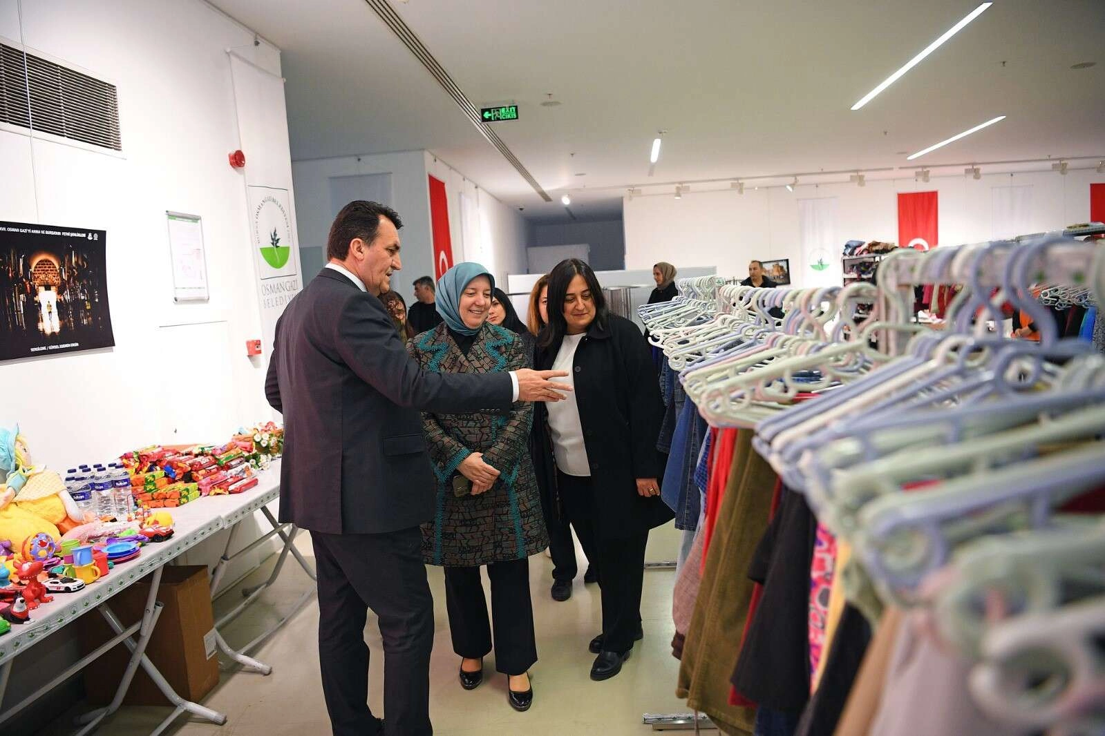 Osmangazi Belediye Başkanı Mustafa Dündar, AK Parti Bursa Milletvekili Emine Yavuz Gözgeç ve AK Parti Bursa İl Kadın Kolları Başkanı Emel Gözükara Durmaz ile birlikte Sevgi Mağazası’nı gezdi. Osmangazi Belediyesi olarak depremin yaşandığı ilk günden depremzede vatandaşların yaralarını bir nebze de olsa sarabilmek için tüm imkanları seferber ettiklerini ifade eden Başkan Dündar, “Gaziantep’in İslahiye ilçesinde inşa ettiğimiz konteyner kent ile yüzlerce depremzedenin barınma ihtiyacını karşılayacağız. Yapım çalışmaları devam eden konteyner kentte, konutların yanı sıra okul, millet kıraathanesi, mescit ve çocuk oyun alanı da yer alacak. Deprem bölgesindeki çalışmalarımız devam ederken depremin ardından şehrini terk ederek Bursa’ya gelen depremzede vatandaşlarımızın kıyafet ihtiyacını karşılamak adına kurduğumuz Sevgi Mağazası’ndan bugüne kadar 3 bin 488 depremzede vatandaşımız faydalandı. Depremzede vatandaşlarımıza en ufak bir destek bile sunabiliyorsak ne mutlu bize” dedi.