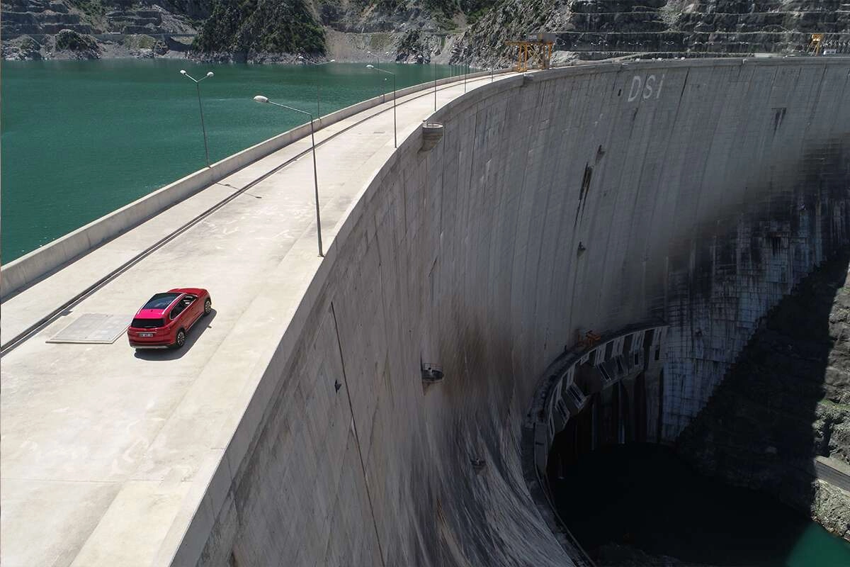 Türkiye'nin yerli ve milli otomobili Togg'un kırmızı renkli SUV modeli, ilk kez getirildiği Artvin'de, Türkiye'nin bir başka dev projelerinden biri olan Deriner Barajında tanıtıldı. Temelden 249 metre yüksekliği olan Deriner barajı ,Yusufeli Barajından sonra ülkemizin ikinci en yüksek barajı konumunda. Kurulu Gücü 670 MW olan Deriner Barajı, yıllık üretim kapasitesi ise 2 milyar 118 milyon KWh. Elektrik üreten barajla üzerinde elektrikli yerli otomobil Togg'un tanıtımı yapıldı.
