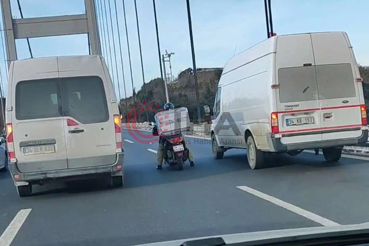 İstanbul'da etkili olan şiddetli rüzgar nedeniyle Fatih Sultan Mehmet Köprüsünden geçmeye çalışan motosiklet sürücüsü zor anlar yaşadı. Kuvvetli rüzgar nedeniyle köprüden geçmeye çalışan motosiklet sürücüsünü gören 2 sürücü, ticari panelvan araçlarıyla motosikletliyi rüzgardan korumaya çalıştı. Güçlükle ilerleyen motosiklet sürücüsüne kalkan olan sürücüler ise motosiklet sürücüsüne Fatih Sultan Mehmet köprüsü bitene kadar eşlik etti. O anlar ise bir başka vatandaşlar tarafından cep telefonu kamerası ile kaydedildi.