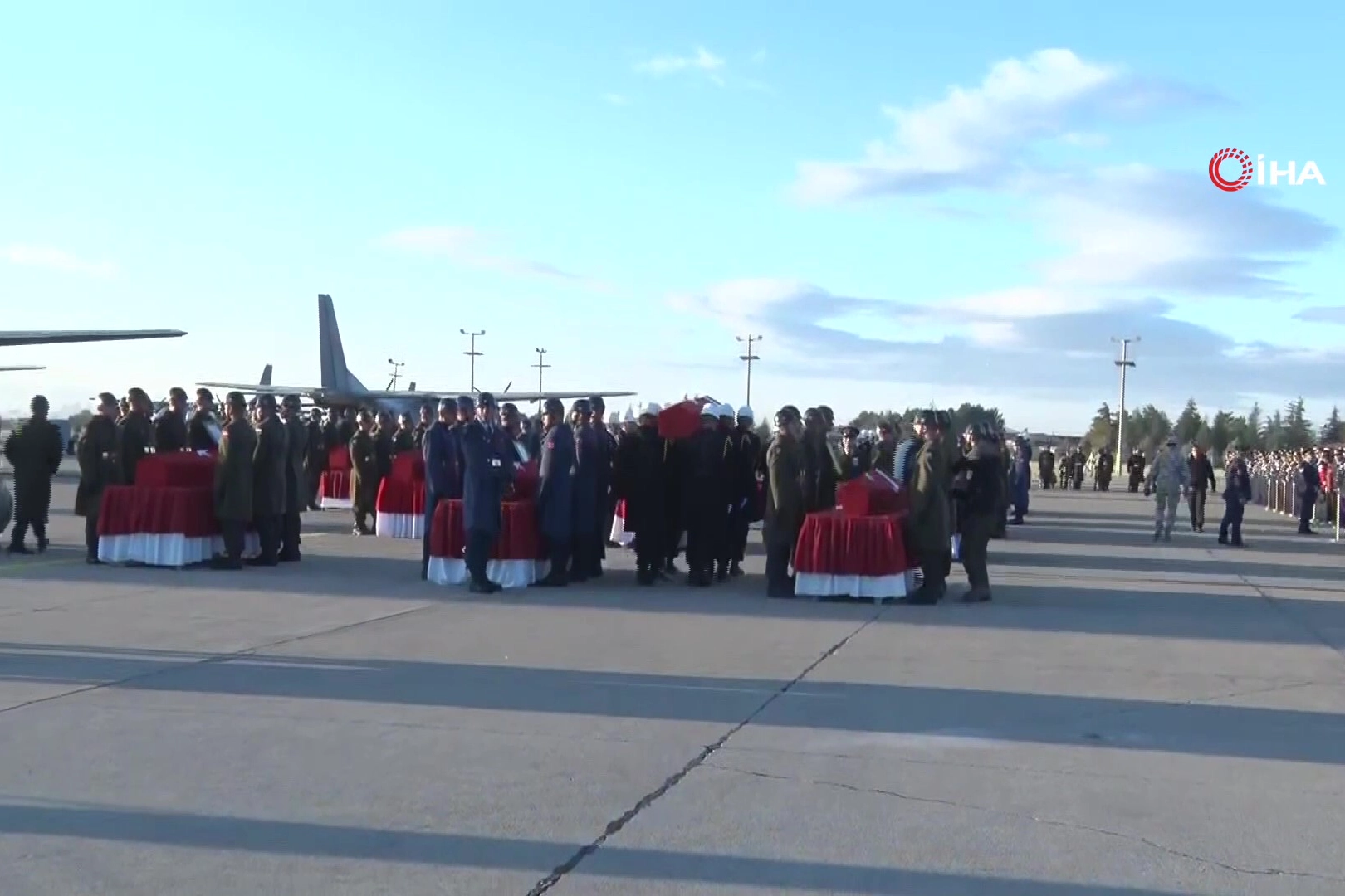 Azerbaycan’dan Türkiye’ye gelmek üzere havalanan Türk Silahlı Kuvvetlerine ait C-130 tipi askeri kargo uçağının Gürcistan’da düşmesi sonucu uçaktı 20 personel şehit olmuştu. Dün gece itibarıyla Ankara’ya getirilen şehitler Adli Tıp Kurumu’ndaki işlemlerinin tamamlanmasının ardından Mürted Hava Meydan Komutanlığı’nda düzenlenen tören ile defnedilecekleri şehirlere gönderildi. Düzenlenen törene, Türkiye Büyük Millet Başkanı Numan Kurtulmuş, Milli Savunma Bakanı Yaşar Güler, Aile ve Sosyal Hizmetler Bakanı Mahinur Özdemir Göktaş, Genelkurmay Başkanı Selçuk Bayraktaroğlu, Deniz Kuvvetleri Komutanı Ercüment Tatlıoğlu, Ankara Valisi Vasip Şahin ve diğer komutanlar katıldı. Törende Diyanet İşleri Başkan Yardımcısı Hafız Osman Şahin dua etti.