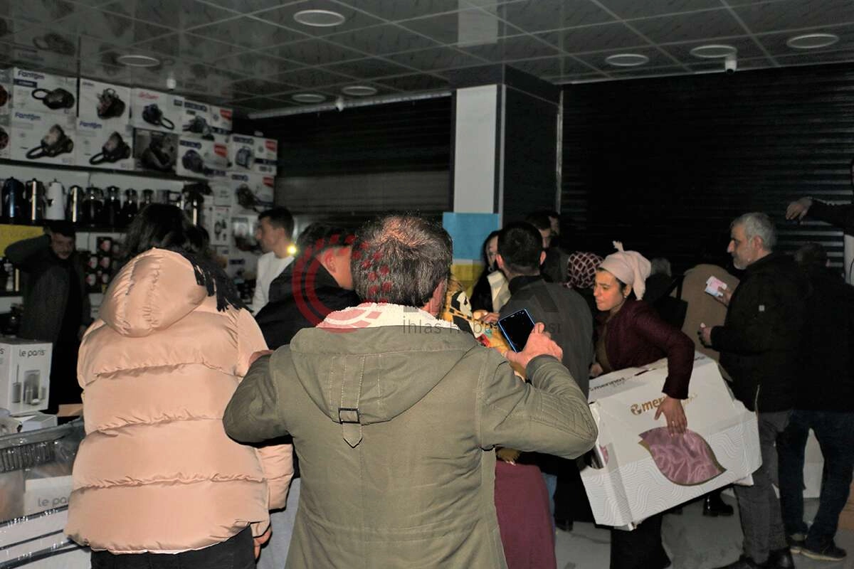 5 bin TL'ye alışveriş yaptıklarını belirten Mustafa Ateş, “Tencere ve kettle gibi ev eşyaları aldık. Burada takım 500 TL, dışarıda da en az 2 bin 3 bin TL civarı. Şuanda ürünlerin yarı fiyatına verilmesinden kaynaklı izdiham oluşmuş. İçeride bayılanlar da var. Ne zaman böyle indirim olsa izdiham çıkıyor. Lütfen böyle indirimler yapmayın. Bütün mahalleli akın etmiş durumda. Kalabalık olmasın diye elektrikler kesildi. Yine de kalabalığın önüne geçemiyorlar” diye konuştu.