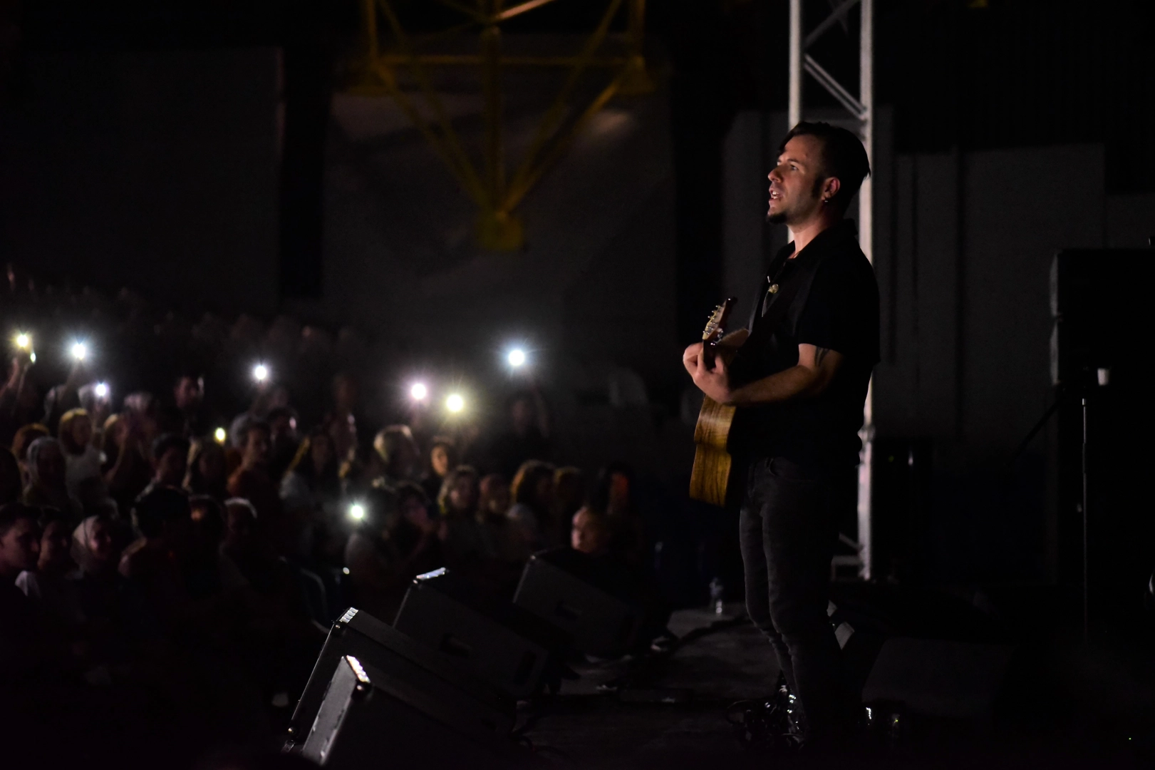‘Bursa’da çalmak çok keyifli dedi’ elektrikler kesildi Şarkı aralarında Bursa dinleyicisi ile hasret gideren Emre Aydın, Bursa’da olmaktan dolayı mutlu olduğunu dile getirdiği esnada talihsiz bir olay yaşandı ve elektrikler kesildi. Emre Aydın; ‘Bu salonda çalmak çok keyifli. Bu akşam da burada olduğumuz için çok teşekkür ederiz. Çok güzel görünüyorsunuz. Müzik yapmak, sahnede canlı müzik yapmak çok güzel ama bazı seyircilere daha büyük bir hevesle geliyoruz. O salonlardan bazı salonlara öyle geliyoruz ‘dediği esnada elektrikler kesildi ve seyirciler hayretler içinde kaldı.