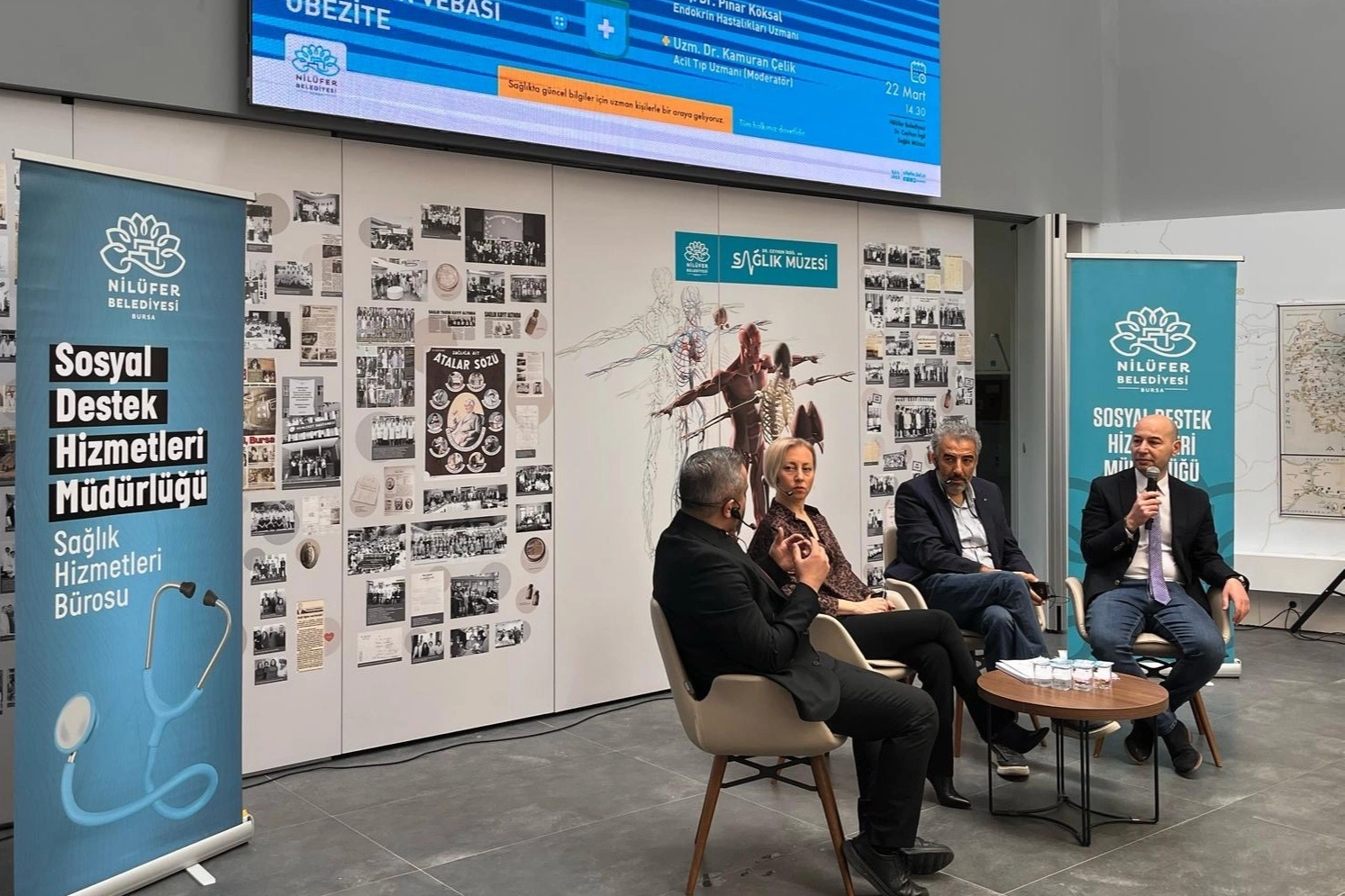 Nilüfer Belediyesi Dr. Ceyhun İrgil Sağlık Müzesi, günümüzün önemli sağlık sorunlarından biri olan obezite ile ilgili söyleşiye, ev sahipliği yaptı. Acil Tıp Uzmanı Dr. Kamuran Çelik moderatörlüğünde gerçekleştirilen söyleşiye; Genel Cerrahi ve Gastroenteroloji Cerrahi Uzmanı Prof. Dr. Murat Çaycı, Psikiyatr Uzmanı Prof. Dr. İbrahim Taymur ve Endokrinoloji ve Metabolizma Hastalıkları Uzmanı Doç. Dr. Pınar Köksal katıldı.