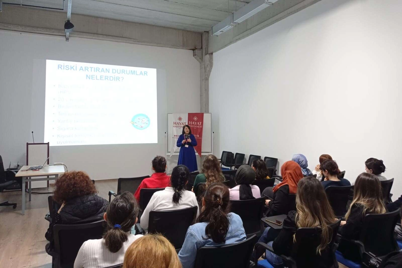 Özel Hayat Hastanesi Kadın Hastalıkları ve Doğum Uzmanı Op. Dr. Nazmiye Şentürk, dünyada her yıl 274 bin kadının hayatını kaybettiği rahim ağzı kanseri hakkında bir tekstil firmasının kadın çalışanlarını bilgilendirdi.