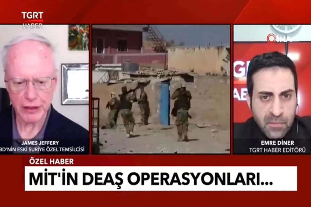 ABD'nin eski Suriye Özel Temsilcisi James Jeffrey, ABD'nin Suriye'deki faaliyetleri, terör örgütü YPG'nin eylemleri ve DEAŞ liderinin MİT operasyonu sonucu etkisiz hale getirilmesi hakkında TGRT Haber'e konuştu. Jefrry, DEAŞ lideri Ebu Hasan el-Haşimi el-Kureyşi'nin MİT operasyonu sonucu öldürülmesine yönelik, Türk istihbaratının büyük bir iş çıkardığı değerlendirmesinde bulundu. Jefrry, Türkiye'nin Suriye'deki muhaliflerden oluşan SMO bileşenleri ile 2016'da başlattığı operasyonda DEAŞ'ın işgal ettiği birçok bölgeyi geri aldığını hatırlattı.