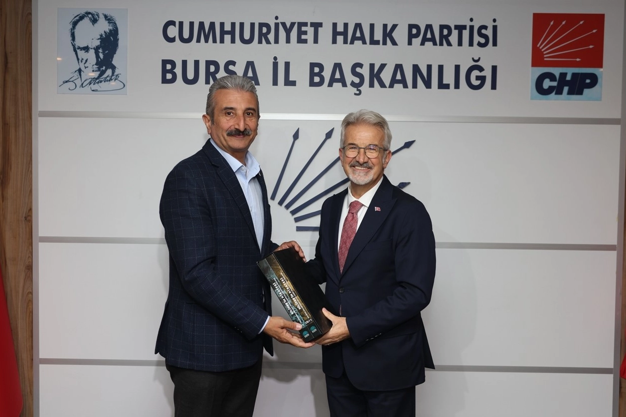 Nilüfer Belediye Başkanı Turgay Erdem, CHP Bursa İl Başkanı Nihat Yeşiltaş’ı il binasında ziyaret etti. Yönetim Kurulu üyelerinin de hazır bulunduğu ziyarette Başkan Erdem ve Yeşiltaş birlik beraberliğin önemine dikkat çekti. CHP eski Bursa Milletvekili Erkan Aydın ve Nilüfer Belediye Başkan Yardımcısı Osman Ayradilli’nin de katıldığı ziyarette Başkan Erdem, Yeşiltaş’a çalışmalarında başarılar diledi. Gelecek yerel seçimler de başarı için herkesin elini taşın altına koyması gerektiğini ifade eden Başkan Erdem, “İlçe ve il kongrelerimizi tamamladık. Artık yeni bir motivasyonla yola çıkma zamanı. Yerel yönetimlerde ilçe belediye sayımızı artırmanın yanında Büyükşehir Belediyesi’ni de kazanarak başarıyı taçlandırmalıyız. Başarı için Nilüfer ekibi olarak biz de elimizden geleni yapmaya hazırız” dedi. Ziyaretten duyduğu memnuniyeti dile getiren Nihat Yeşiltaş da Nilüfer’in, CHP için Bursa’da gurur kaynağı olduğunu belirtti. Nilüfer’in, bu konuma gelmesinde emeği geçenlere teşekkür eden Yeşiltaş, “Nilüfer’i çalışmalarımızda her zaman örnek gösterdik. Bundan sonra da birlik ve beraberliği sağlamalıyız. Halka hizmet noktasında başarı için çaba gösterirsek hedeflerimize ulaşacağız. Fikir ayrılıkları olabilir ama hepsi kongre salonlarında kaldı. Artık bütün Bursa’yı Nilüfer gibi yapabilmek için elimizden geleni yapmalıyız. Büyükşehir’i kazanarak bu hedefe ulaşacağız. CHP iktidarı için sokakta hayal kuran, umut eden insanlar var ve biz de buna cevap vermeliyiz. Ayrışmalara, kutuplaşmalara son vererek toplumu kucaklaştırmak için yola çıktık. Ortak siyaset anlayışıyla hareket edeceğiz” diye konuştu. Ziyaret sonunda Başkan Erdem, Yeşiltaş’a günün anısına hediyeler vererek çalışmalarında başarılar diledi. Başkan Erdem ziyarette CHP Bursa İl Başkanı Nihat Yeşiltaş’a Nilüfer’in Hikayesi kitaplarını armağan etti.