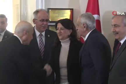 İstanbul Milletvekili Sırrı Süreyya Önder, Van Milletvekili Pervin Buldan ve eski Mardin Büyükşehir Belediye Başkanı Ahmet Türk’ten oluşan DEM Parti heyeti, İmralı’da terör örgütü PKK’nın elebaşı Abdullah Öcalan ile yapılan görüşmenin ardından TBMM Başkanı Numan Kurtulmuş ile gün içerisinde görüşme gerçekleştirmişti. Heyet, Kurtulmuş ile olan görüşmesinin ardından TBMM’de MHP Genel Başkanı Devlet Bahçeli ile bir araya geldi. Bahçeli’nin TBMM’deki makamında gerçekleşen görüşme öncesinde Bahçeli, DEM Partili heyeti kapıda karşılayarak, heyetle tokalaştı. Görüşmede Bahçeli’ye MHP İstanbul Milletvekili Celal Adan da eşlik etti. Basına kapalı gerçekleşen görüşme 40 dakika sürerken, görüşmelerin ardından herhangi bir açıklama yapılmadı. DEM Parti İstanbul Milletvekili Sırrı Süreyya Önder, pazartesi günü AK Parti, CHP ve TBMM’de temsil edilen diğer partileri ziyaret edeceklerini de açıklamıştı.