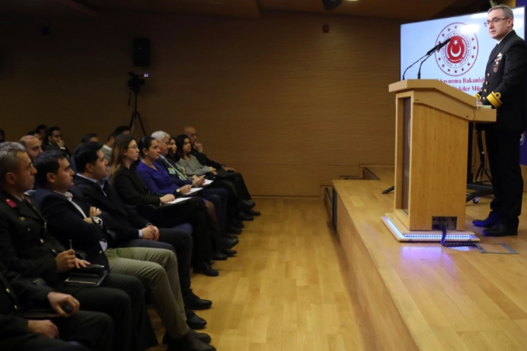“Diğer taraftan terör yuvalarına kilit vurmaya devam eden Türk Silahlı Kuvvetlerimiz; geçtiğimiz hafta Pençe-Kilit Operasyonu bölgesinde teröristlere ait birçok bölümü bulunan mağara ile yine içerisinde çok sayıda silah, mühimmat ve yaşam malzemesi bulunan bir mağarayı tespit etmiştir.” Hudut hattında 1’i terörist toplamda 109 kişinin yakalandığını belirten Tuğamiral Aktürk, “2 bin 16 şahıs ise engellenmiştir. 7 gün 24 saat esasıyla çok yönlü ve etkin tedbirlerinin alındığı hudutlarımızdaki başarı rakamlara da yansımış; 2024 yılında hudutlarımızdan yasa dışı yollarla geçmeye çalışırken yakalananların sayısı 13 bin 939, engellenen kişi sayısı da 97 bin 356 olmuştur. Türk Silahlı Kuvvetlerimiz; terörle mücadele ve hudut güvenliğinde elde edilen başarı ve etkinliğin çıtasını 2025 yılında daha da yukarılara taşıma azim ve kararlılığındadır” şeklinde konuştu. Bölgesel ve küresel barış için öncü bir rol üstlenen TSK’nın birçok coğrafyada başarıyla görev yapmaya devam ettiğini hatırlatan Tuğamiral Aktürk, “13 yıllık iç savaşın ardından tarihî bir dönemden geçen komşumuz Suriye’de; mevcut durum ve gelişmeler yeni yönetim ile iş birliği ve koordinasyon içerisinde yakından takip edilmekte, Suriye’nin birliği ve toprak bütünlüğü ile terörle mücadeleye verdiğimiz önem ve öncelik kapsamında Suriye’nin güvenlik ve savunma kapasitesinin artırılmasına yönelik hazırlıklara devam edilmektedir. Birliklerimiz tarafından bölgede istikrarın sürdürülmesine yönelik gerekli tüm tedbirler alınmakta, Suriyelilerin gönüllü, güvenli ve saygın bir şekilde dönüşlerinin sağlanmasına yönelik çalışmalar sürdürülmektedir” diye konuştu.