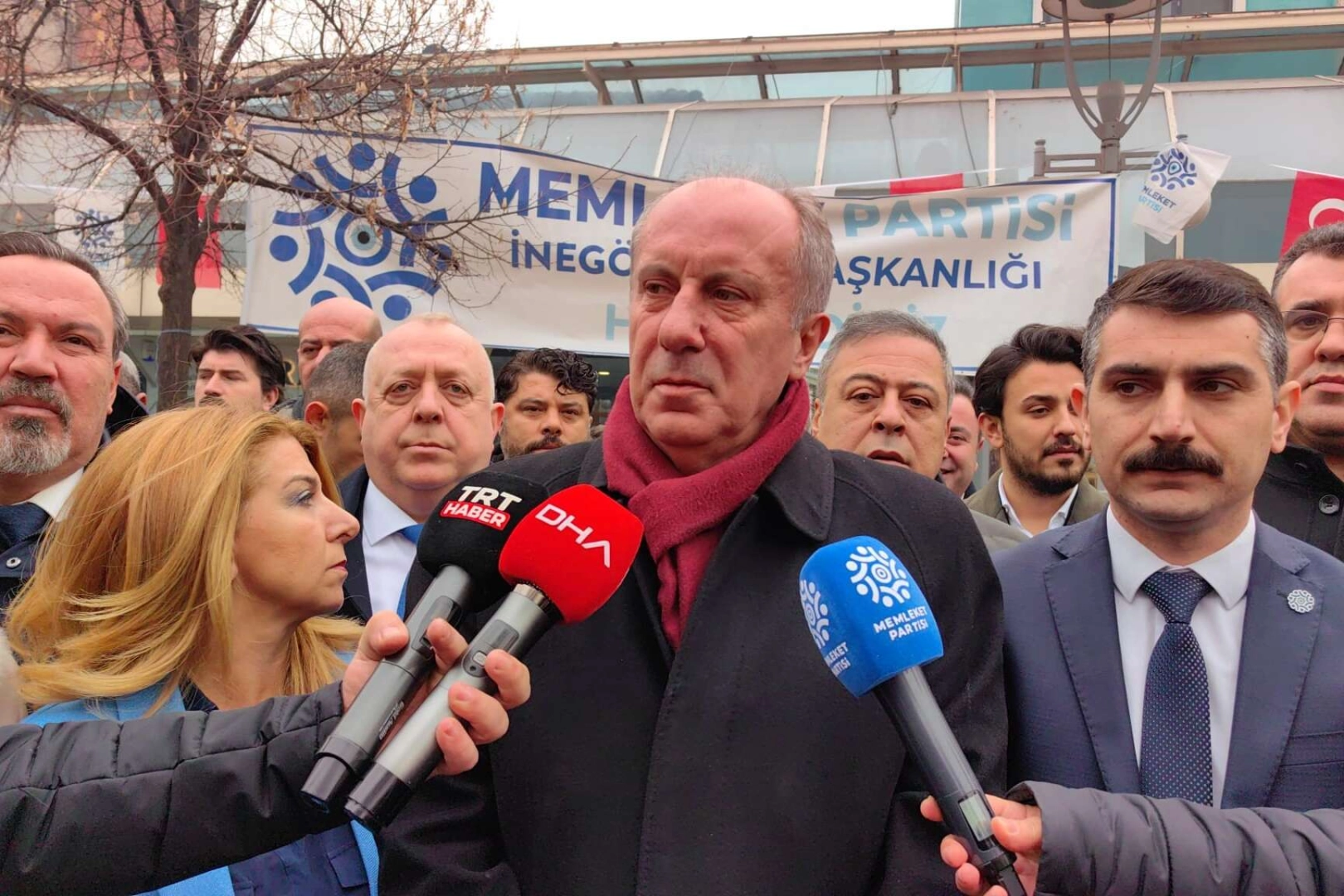 İnegöl ilçesinde bir dizi ziyaret yapan Memleket Partisi Genel Başkanı Muharrem İnce Nuri Doğrul Caddesi’nde esnaf ziyareti yaptıktan sonra cuna Namazını İshakpaşa Camisinde kıldı. Cami çıkışında açıklamalarda bulunan İnce altılı masayı eleştirerek “İktidar karşısında umut olması gereken altılı masada bayrak indirenler var Türklüğü kaldıranlar var, anayasanın ilk 4 maddesini kaldırmak isteyenler var, şaşkınlıkla izliyoruz. Bunlar herhalde Recep Tayyip Erdoğan’ın gizli hayranları. Erdoğan’dan kurtulalım derken Türkiye’yi kaybedeceğiz korkuyorum. Böyle saçmalığın ortasında buluyoruz kendimizi. Boşuna demiyoruz ne cumhur ne millet tek yol memleket diye. “ “Davutoğlu’nu izliyorum, imza atacakmış cumhurbaşkanı böyle cumhurbaşkanı olur mu kendilerine sekreter arıyorlar. Yüzde 50+1 ile seçilecek adam yüzde 1 alan genel başkana soracak şuraya kimi müdür yapalım diye. Bunlar kafalarını peynir ekmekle yediler. Türkiye’yi bu uçurumun kenarından alacağız. İktidar ortak aklı yitirmiş muhalefette ortak aklı yitirmiş.” 2018’de neden desteklenmedi? “2018 yılında İYİ Parti bugünkü konumuna göre daha güçlü konumdaydı, CHP’ye muhtaçtı o zaman Kılıçdaroğlu o zaman biz sana 15 milletvekili veririz ama sende Muharrem İnce’yi destekle demedi. Şimdi kendi için ortak birlik istiyor acaba 2018 yılında kazanmak mı istemiyordu. Acaba Muharrem İnce kaybetsin diye mi planı vardı. Türkiye’yi bu badireden kurtaracağız. Siyasi deneyimimiz buna yeterlidir. 6 tane genel başkanın sekretearyasınımı yapacak Cumhurbaşkanı. Bu komediden öte bir durumdur.” “Erken seçim diye bir şey kalmadı seçim kapıda. Artık bu tartışmayı bırakmak lazım“ İnce, Sinan Ateş cinayeti hakkında gelen soruya "memleketin çivisi çıktı" cevabını verdi. Sokakların artık güvensiz olduğunu belirten İnce, “Türkiye’de artık anayasa yok yasa yok güvenlik yok. Sinan Ateş’in başına gelen hepimizin başına gelebilir. Bu ülkenin sokakları artık güvenli değil. Bu ülkenin sokaklarında gezerken hepimiz tedirginiz. Sokağa çıkan kadında tedirgin okula giden çocukta tedirgin herkes tedirgin. Bu memlekette arkadaşlarını öldürüyorlar. Bugün ailesinin yanına başsağlığı dilemeye gideceğim. Devlet bitmiş devletin gelenekleri kuralları yok olmuş. Ülkenin çivisi çıkmış o çiviyi yerine çakacağız“ dedi.