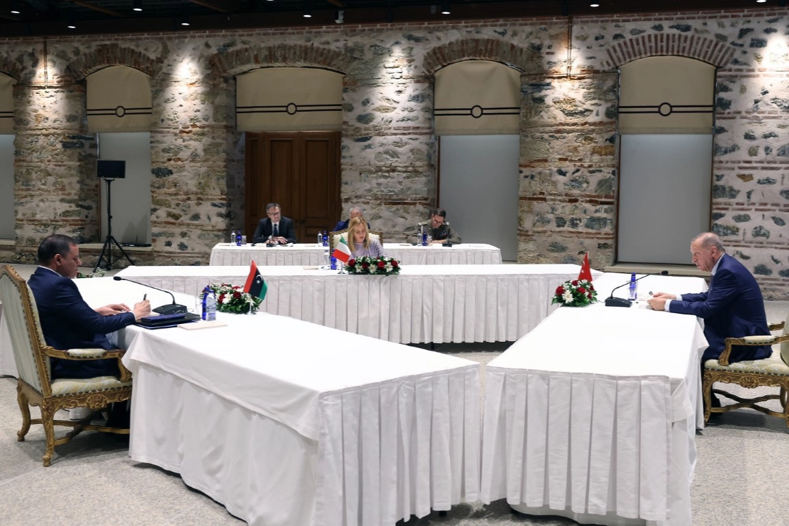 Cumhurbaşkanı Recep Tayyip Erdoğan, İtalya Başbakanı Meloni ve Libya Başbakanı Dibeybe'yi Dolmabahçe Çalışma Ofisi'nde kabul etti. Zirvede Akdeniz'deki enerji başta olmak üzere, Filistin'de yaşananlar ve düzensiz göçle mücadele konuları ele alındı.