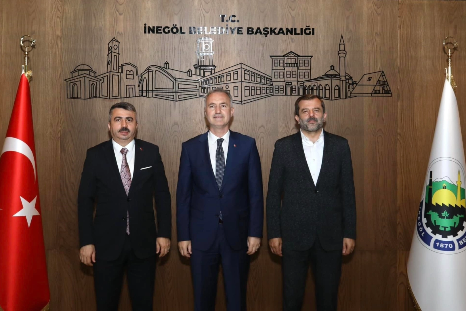 İnegöl’de hayata geçirdiği vizyon projelerle şehrin geleceğini imar eden Belediye Başkanı Alper Taban, 31 Mart 2024 Mahalli İdareler Seçimleri vatandaşların desteği ile yeniden İnegöl Belediye Başkanlığına seçildi. Hizmet seferberliğine kaldığı yerden devam eden Başkan Taban, bir yandan da tebrik ziyaretlerini kabul ediyor. Bu kapsamda Perşembe günü Yıldırım Belediye Başkanı Oktay Yılmaz ile Gürsu Belediye Başkanı Mustafa Işık Başkan Taban’ı ziyaret etti.